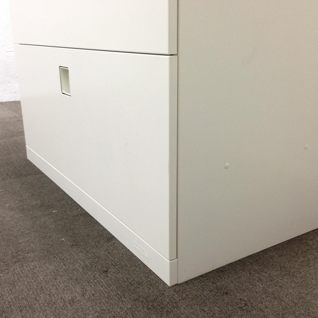 【オフィスの必需品!大容量の三段キャビネット!】■オカムラ(okamura)製 レクトラインシリーズ 3段ラテラル ローキャビネット ■ベース付 ■シリンダー錠 ■ホワイト 【弊社使用欄:A01037187】