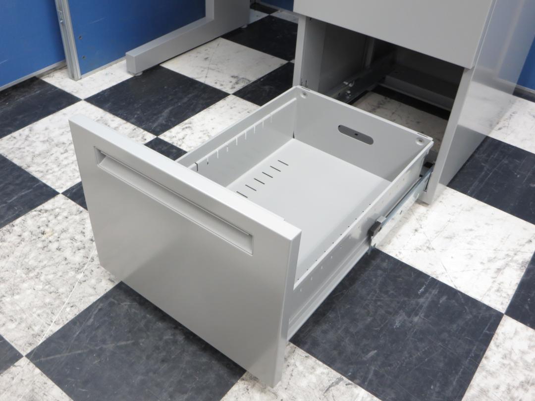- シンプルながらも使いやすい工夫があります。ロックは、一度の施錠ですべての引出しの鍵がかかるオールロック機構。