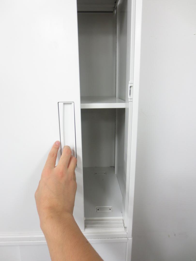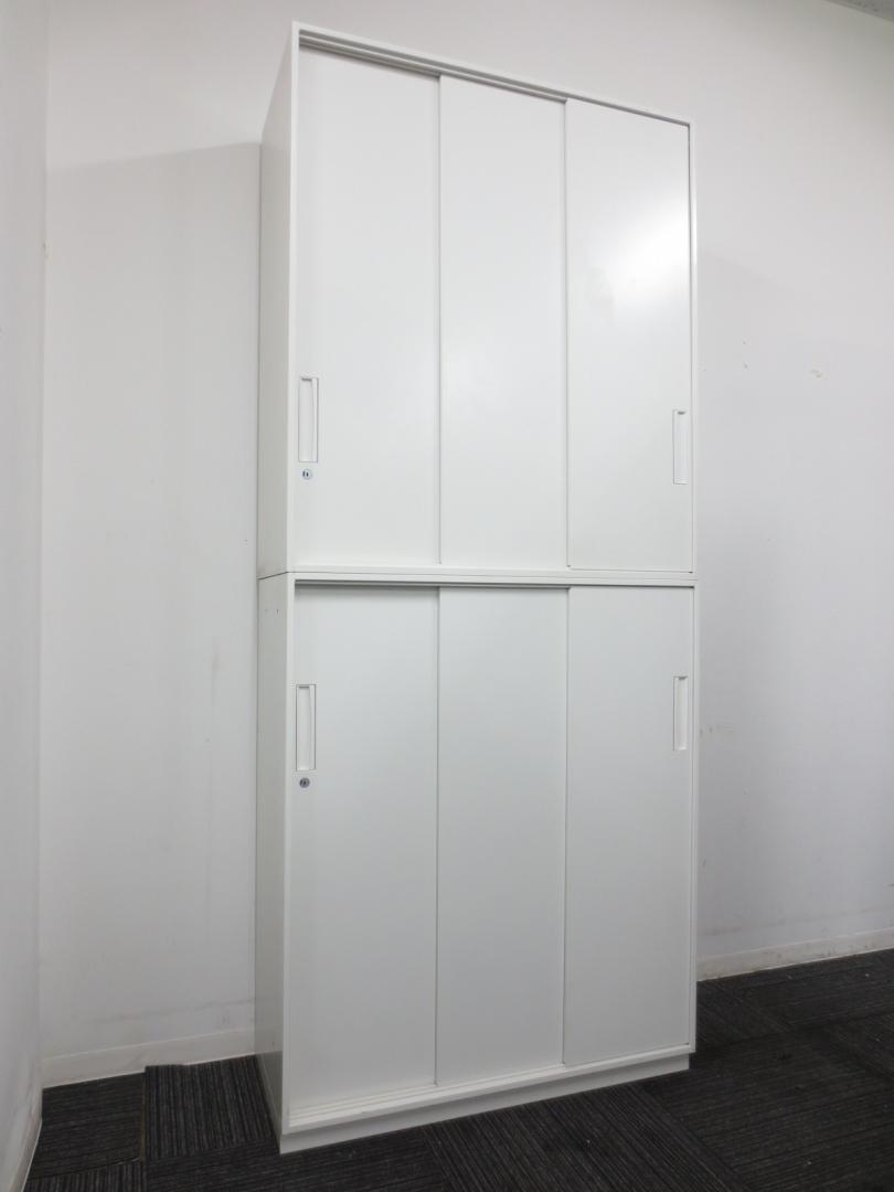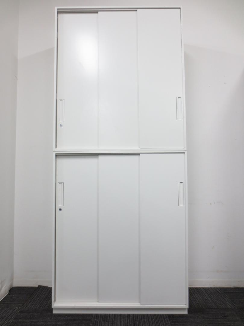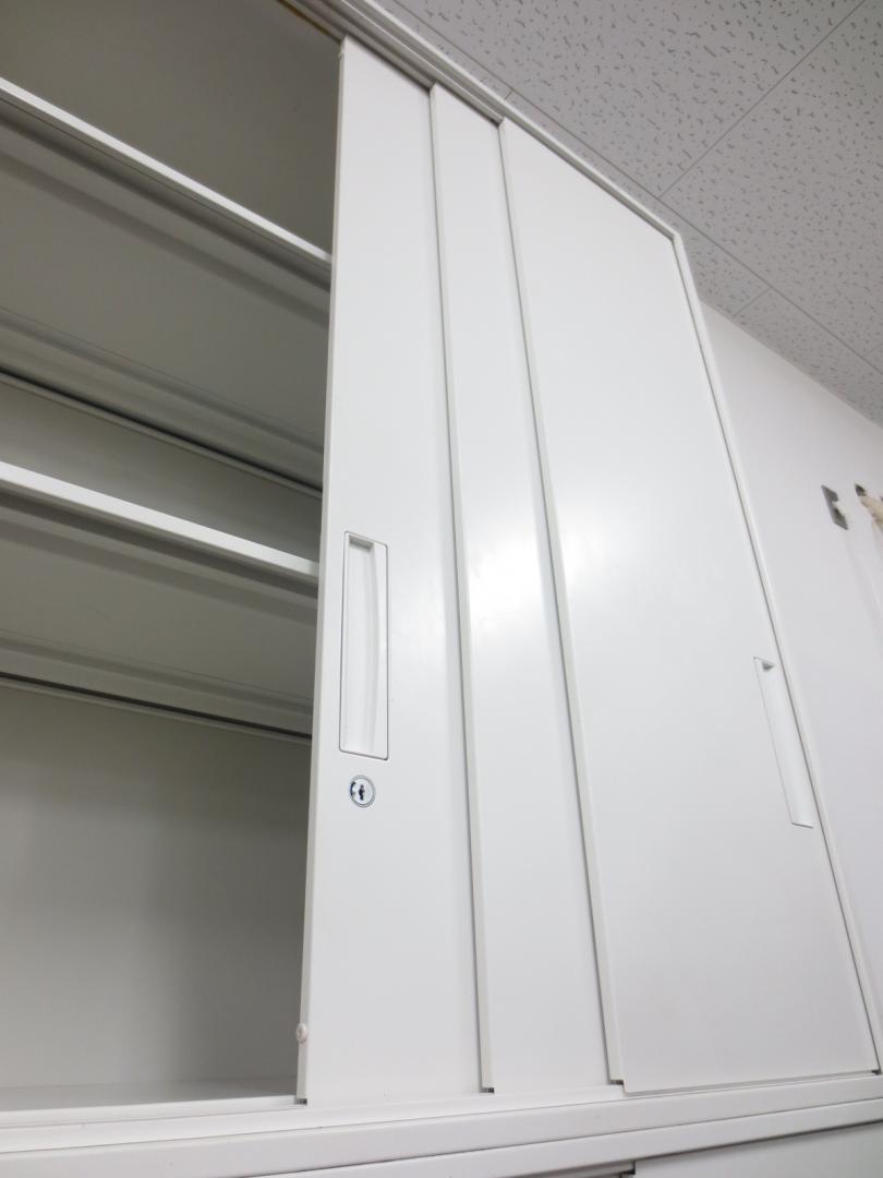 【状態良好!!ホワイト書庫セット!!】【人気の3枚引き違いタイプ!!】■ホワイト■扉が広々と使える!!3枚引き違い書庫セットでございます。- 春日部・越谷店