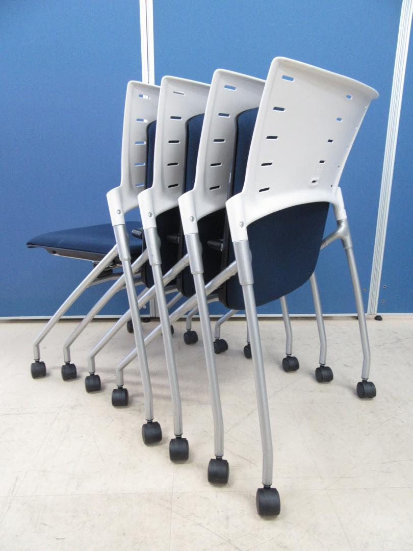 [4脚セットで2,000円お買い得!!]イトーキ(ITOKI) MANOSS(マノス)チェア ネイビーブルー(B2) 背パッド付■会議室や学習塾・研修等でのご使用におすすめです!![ネスタブル]- 足立・葛飾店