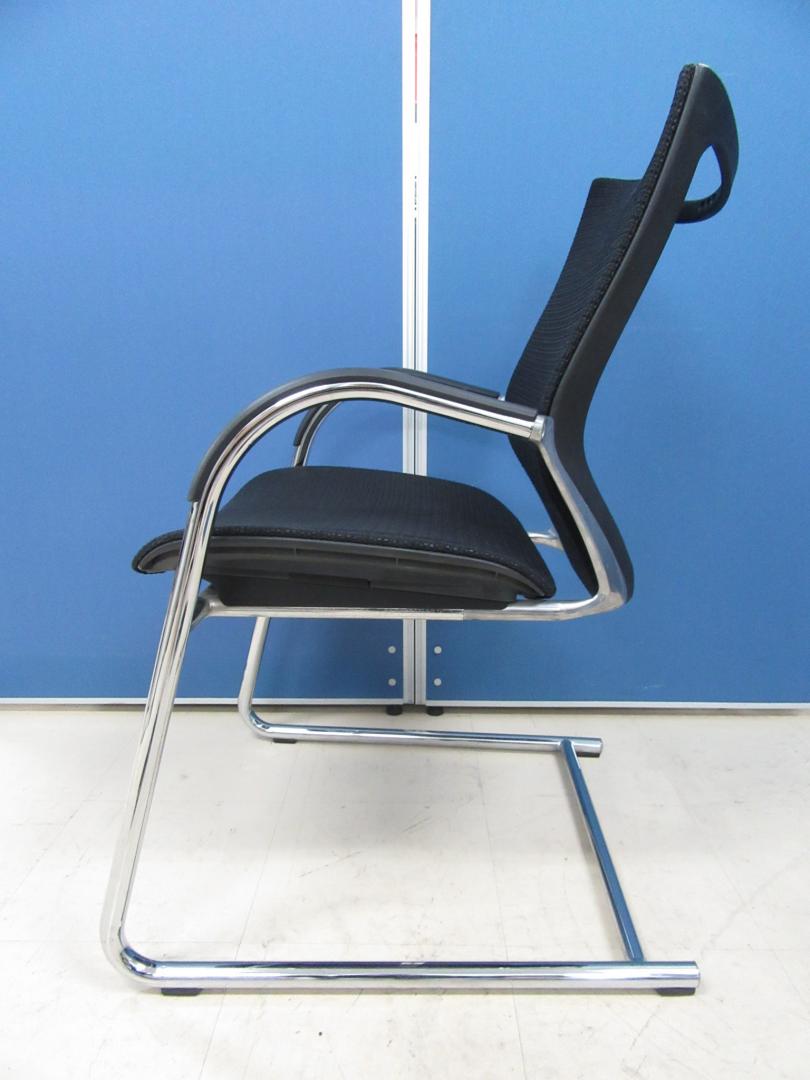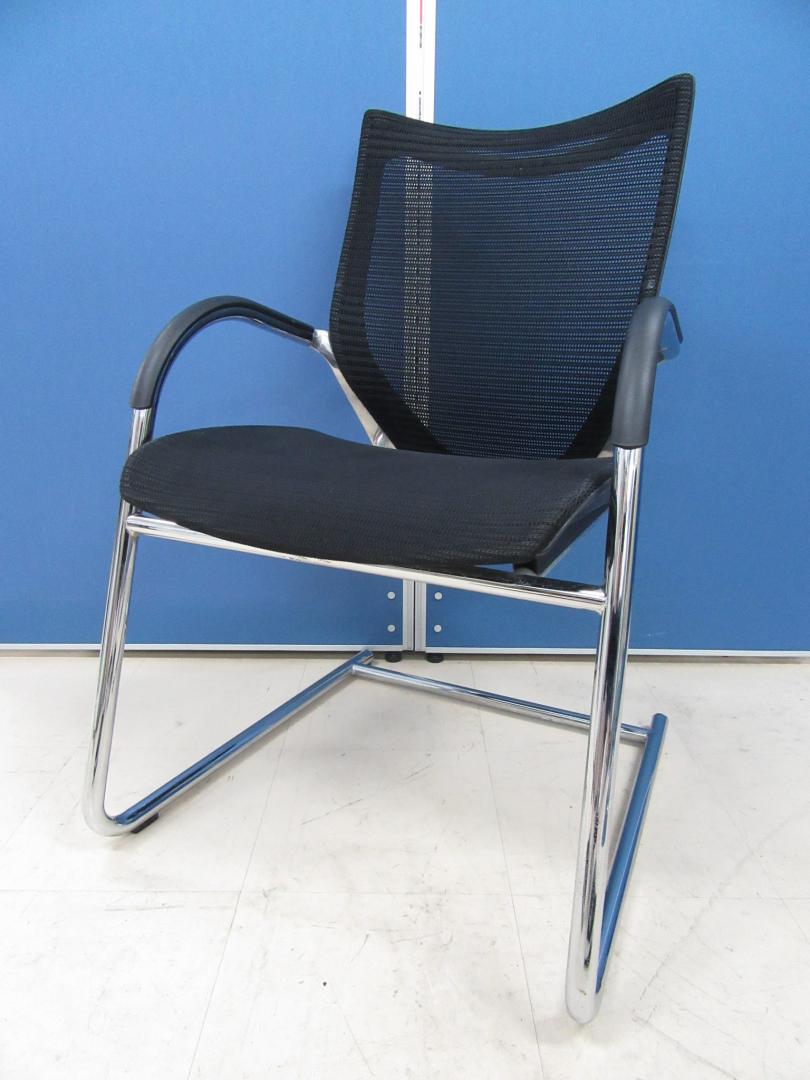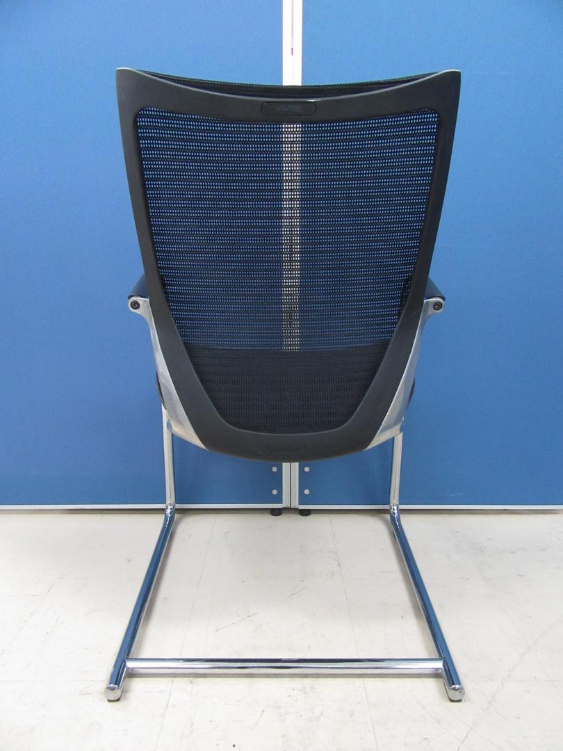 【在庫入替セール】オカムラ バロン ゲストチェア(ミーティングチェア) 背メッシュ×座クッション カンチレバー脚 ブラック×クロームメッキ