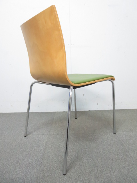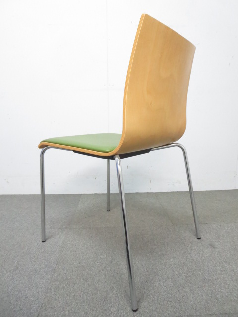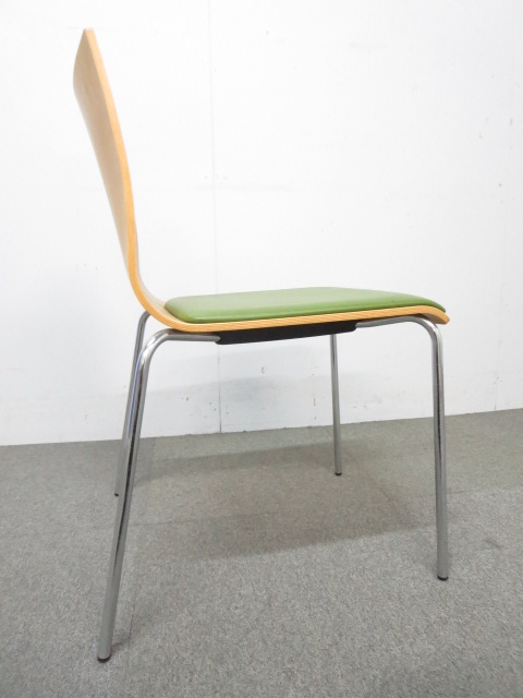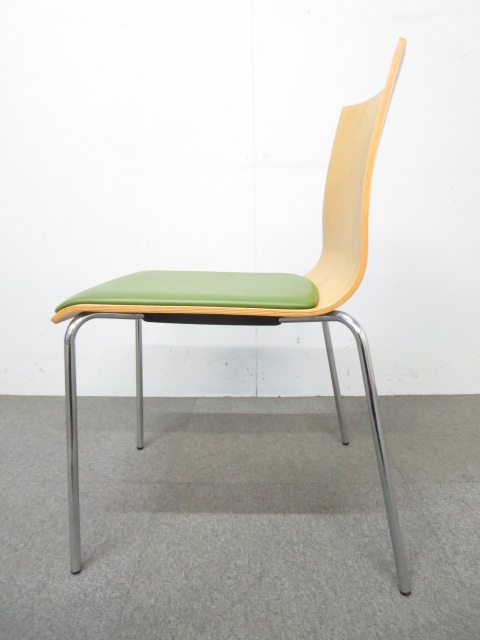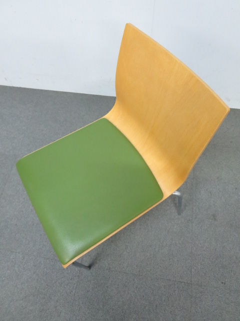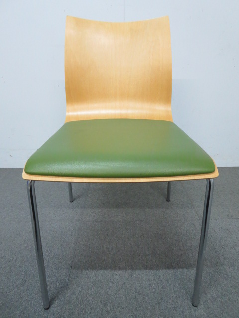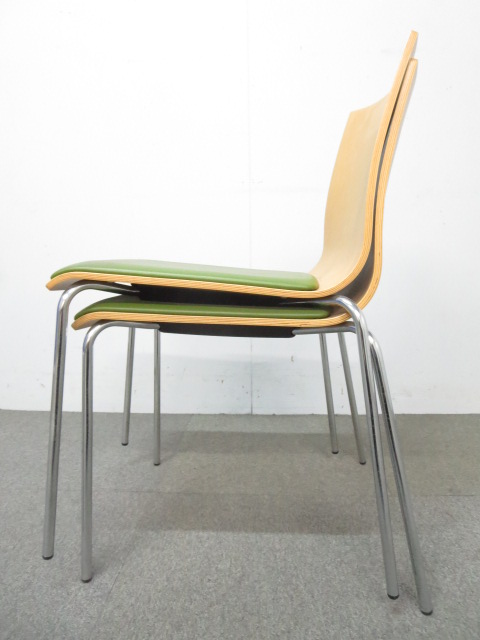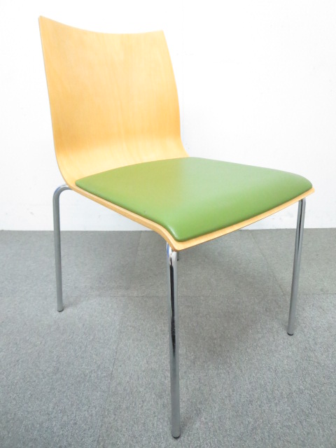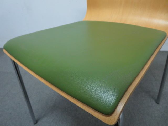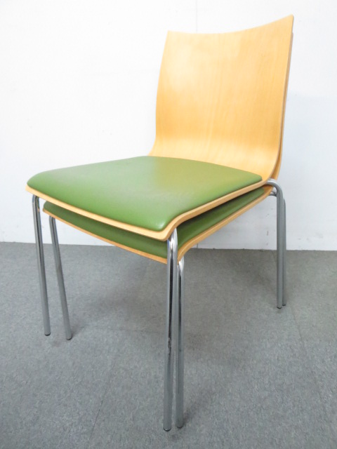【リフレッシュスペースにオススメ!】■ウチダ スタッキングチェア ■グリーン【癒しの木目フレーム!】- 川崎店