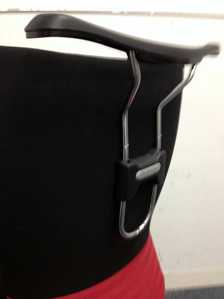 - 背もたれの裏側にハンガーがついているので上着などを形よく掛けられ、袖や裾が床に付きにくくなります。