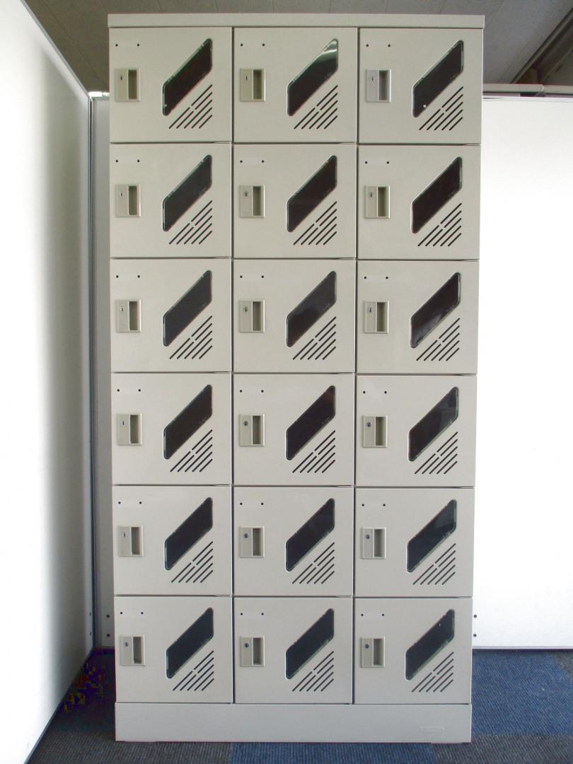 【全体的に日焼けあり】3列6段の18人用シューズロッカー!【中板がございません。】- 千葉店