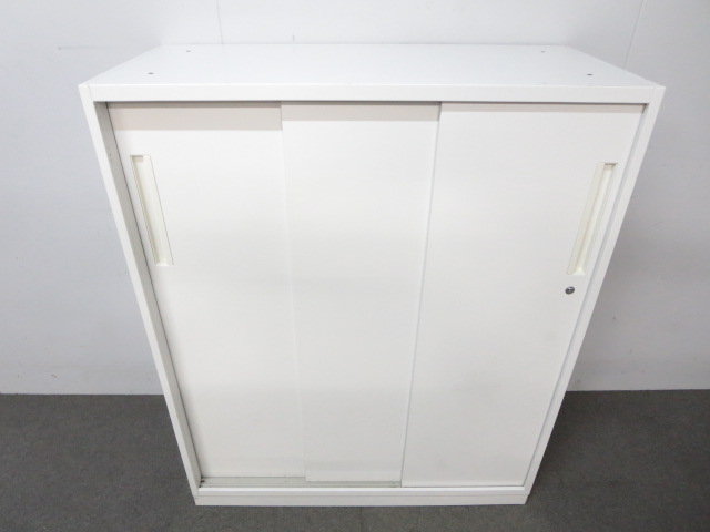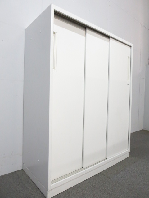 ■ウチダ 3枚引戸書庫 ホワイト ■中央に収納したファイル書類も取り出しやすいスライド扉! ■内田洋行 HS(ハイパーストレージ)シリーズ- 川崎店
