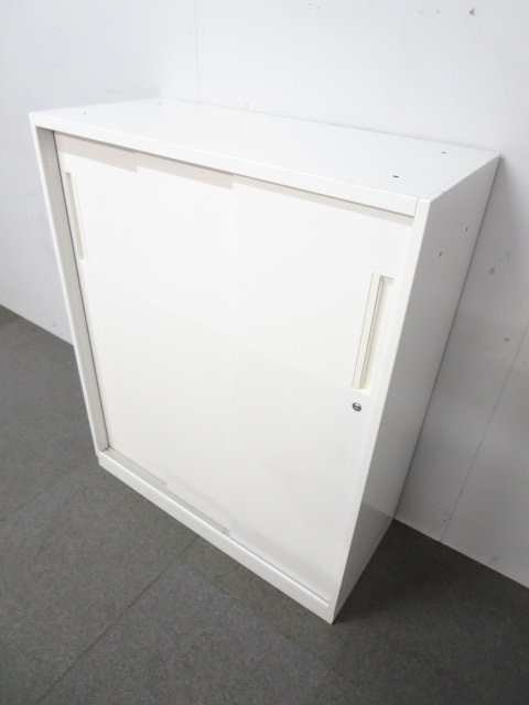 【在庫入替セール品!】【スライド引き戸だから開閉スペースに困りません!人気の引き違い書庫!】/オススメ(おすすめ) /人気商品【弊社使用欄:A01001006】■引違い書庫 2枚戸タイプ ローキャビネット シリンダー錠 ホワイト/内田洋行/HS