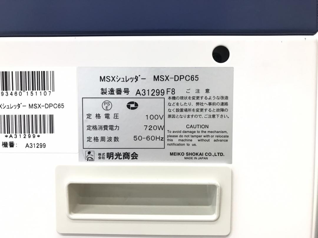 【中古】 MSX-DPC65 明光商会 シュレッダー 201694