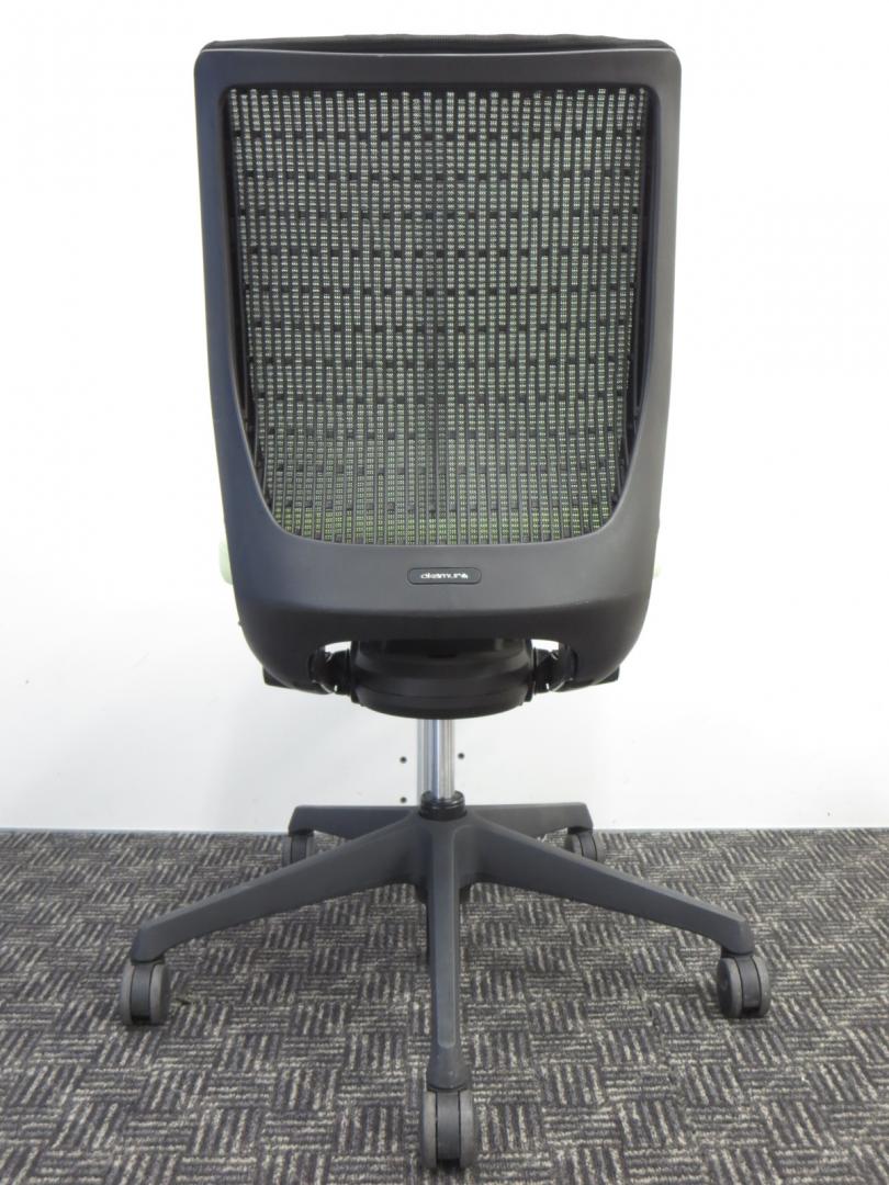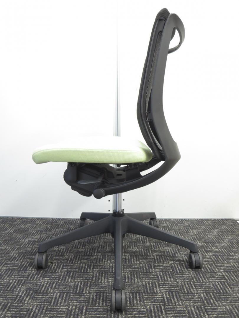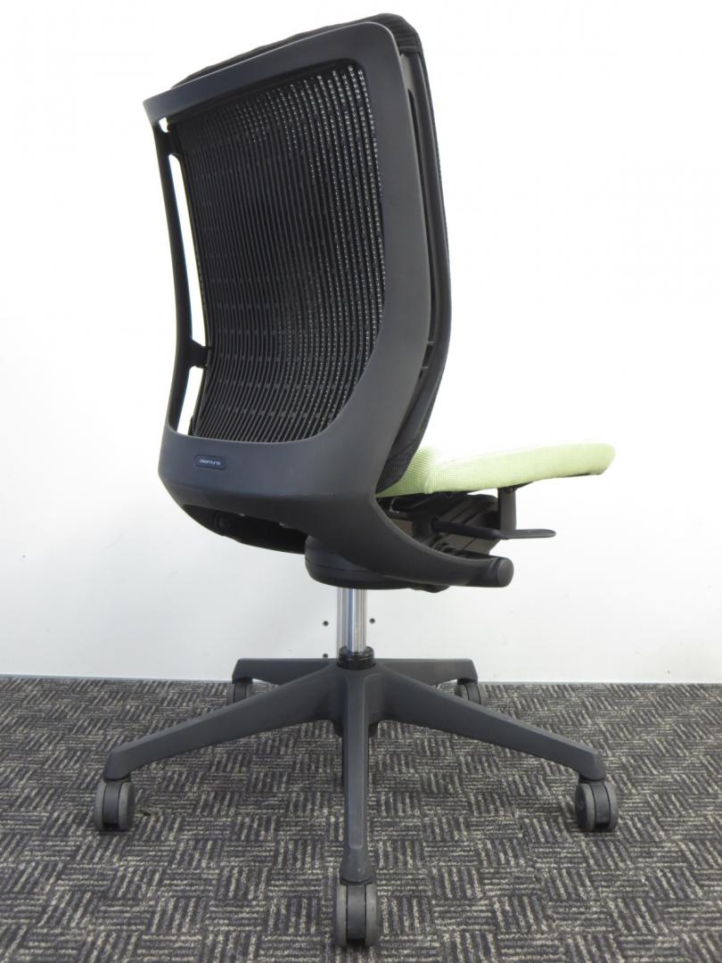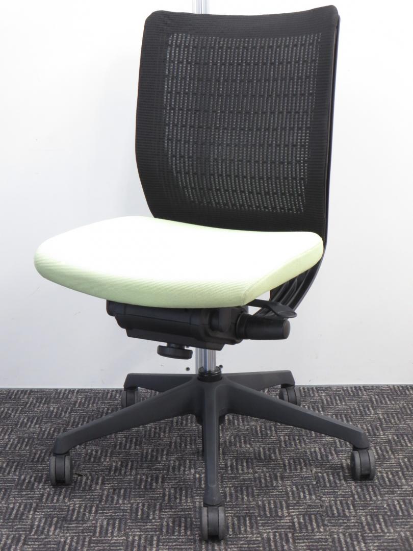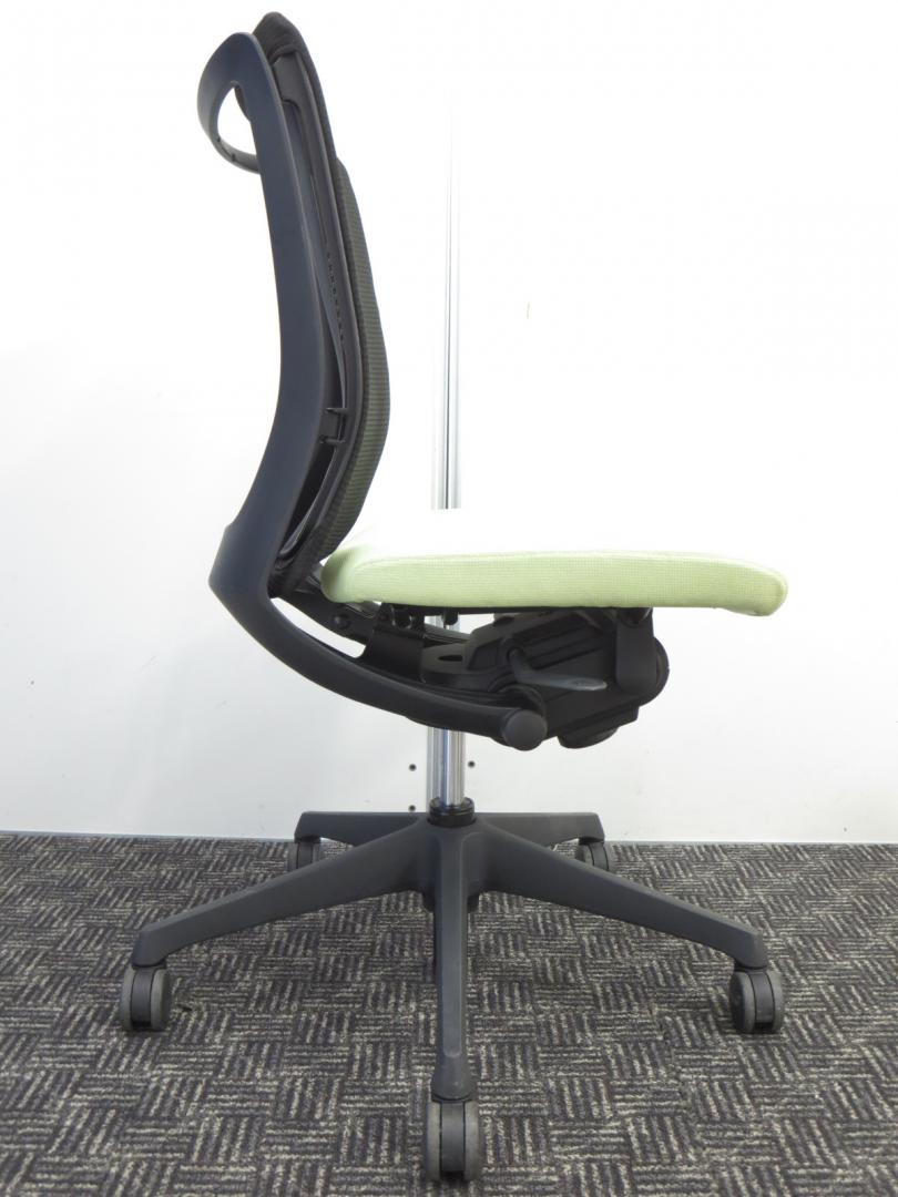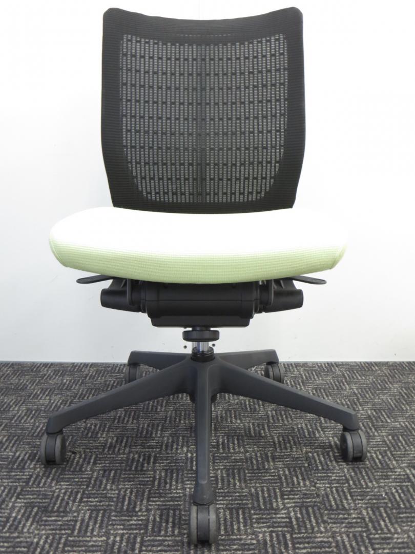 【在庫入替セール品【定価6万円】【快適さにリピーター続出!人間工学に基づいた快適な座り心地!】■オカムラ(okamura) ヴィスコンテ(Visconte) プレーンタイプ 肘無ローバック 背面メッシュ ■背面:ブラック/座面:ピスタチオグリーン