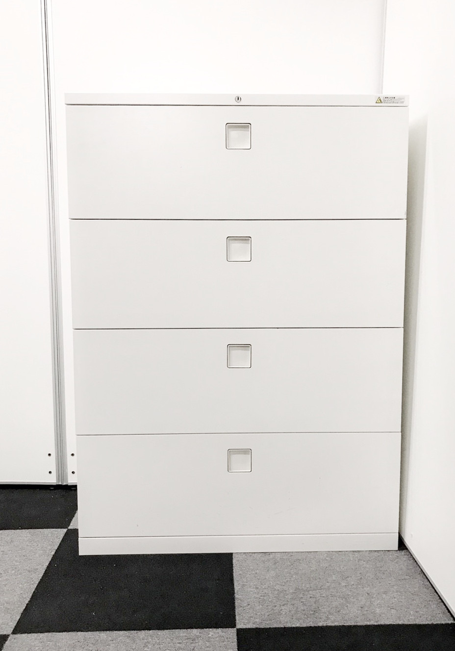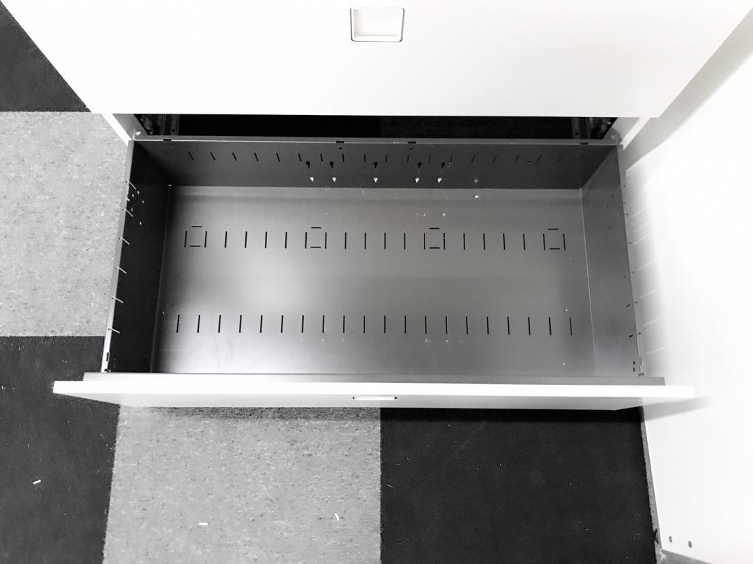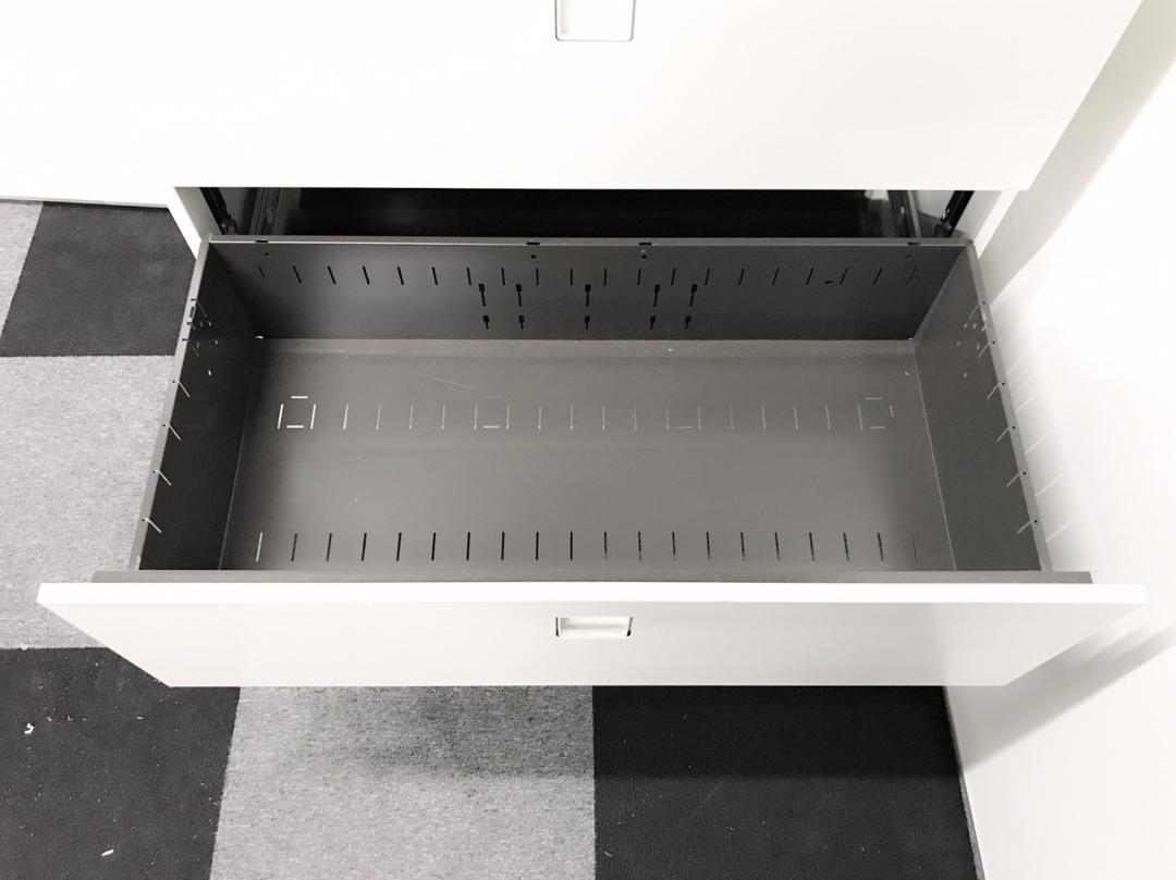 【オフィスの必需品!大容量の三段キャビネット!】■オカムラ(okamura)製 レクトラインシリーズ 3段ラテラル ローキャビネット ■ベース付 ■シリンダー錠 ■ホワイト 【弊社使用欄:A01037187】