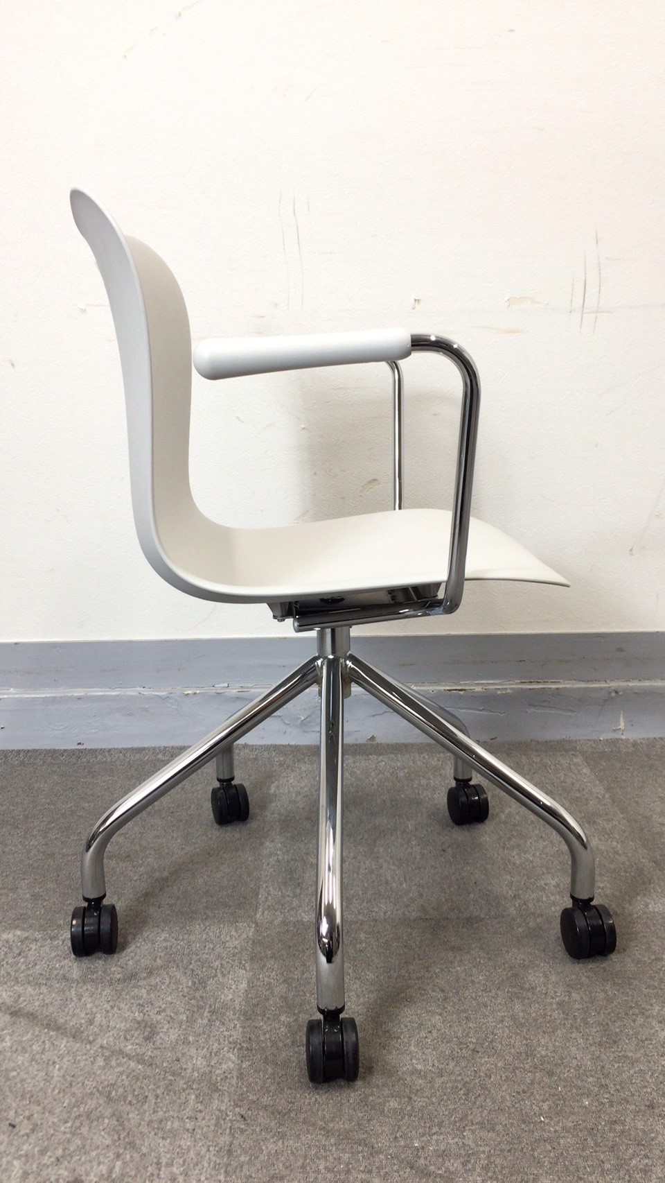 【KS】[ヌードタイプ]ホワイトカラーが清潔な印象を与えます ミーティングチェア 肘付き[休憩スペースのイスとしてもお勧め]- 茨城南店
