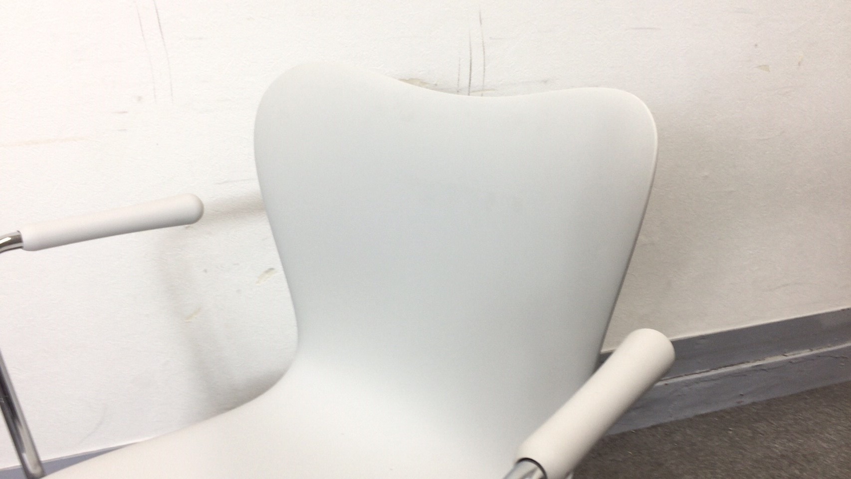 - かなり強い濃い黄ばみ・変色が商品全体にある。(例、座面・背もたれ、脚部等にある。)