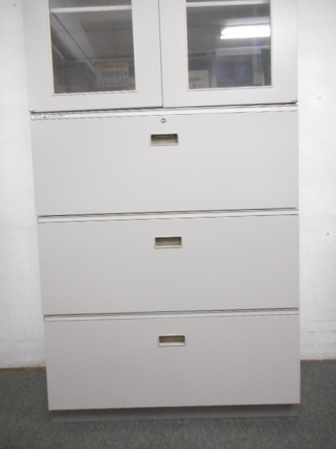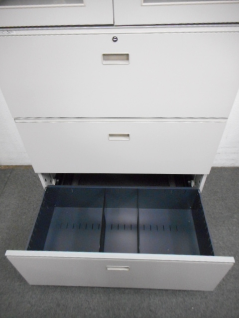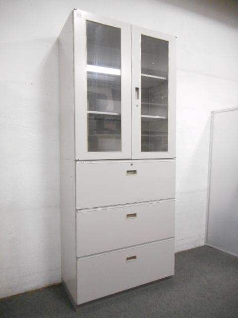 ■イトーキ 上下書庫セット【ガラス両開+3段ラテラル】■シンラインキャビネット【中古オフィス家具】- 川崎店
