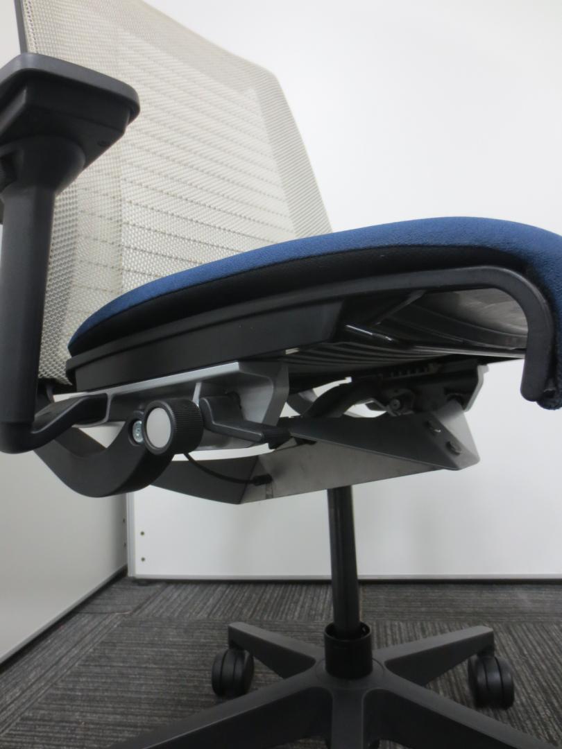快適な座り心地に不可欠な調節機能である、上下昇降、座面の奥行き調整、リクライニングなどを備えており、操作もわかりやすく好評です。 特に、座面の奥行きは、座面下の左右に通った細いバーで調整でき、座ったままで軽やかに滑るように調整が可能です。 価格面では、新品では高めですが、中古は流通も多く、定価の3割前後の価格で高級チェアの座り心地を手に入れることができます!