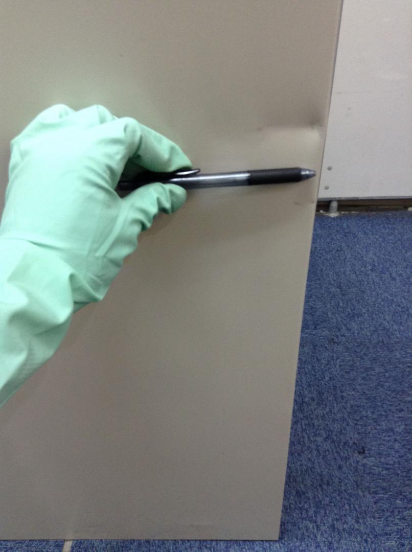 - あり黄ばみ・変色が広い範囲にうっすらある、または濃い黄ばみ・変色が一部ある。(例、天板、正面、背部、サイド部分にある。)