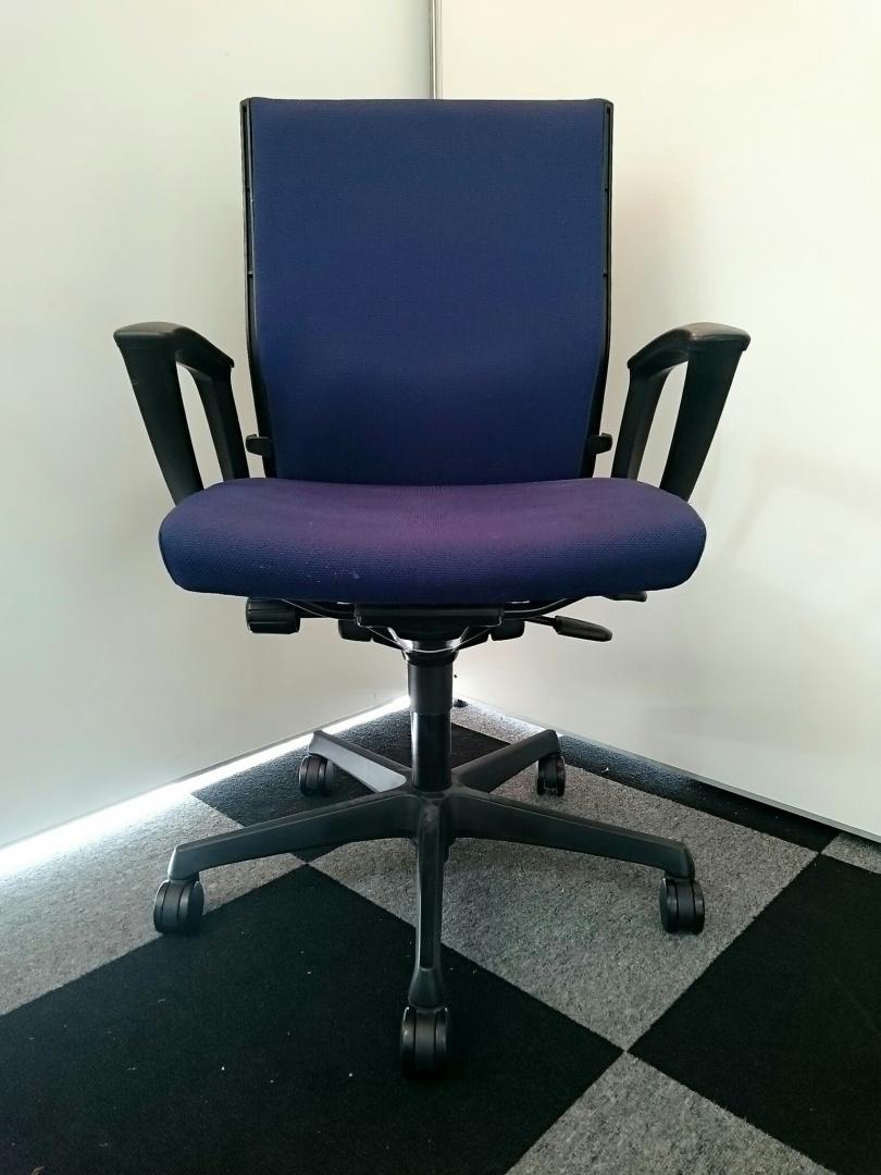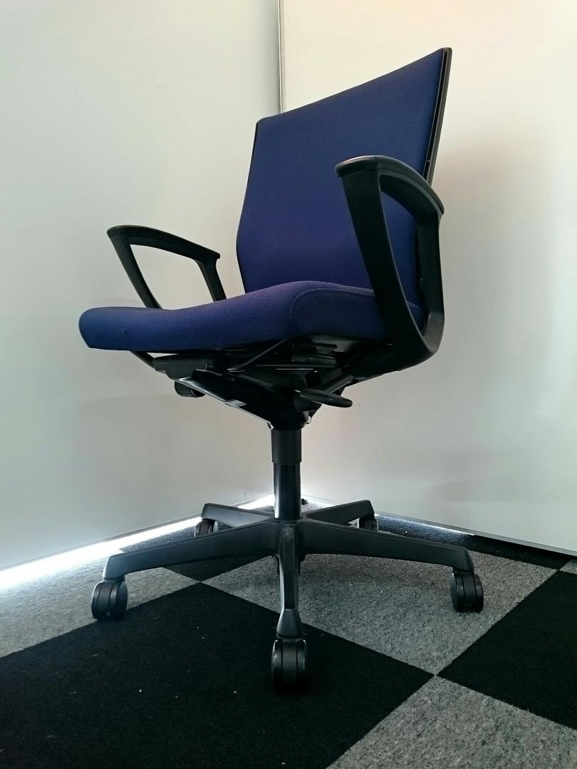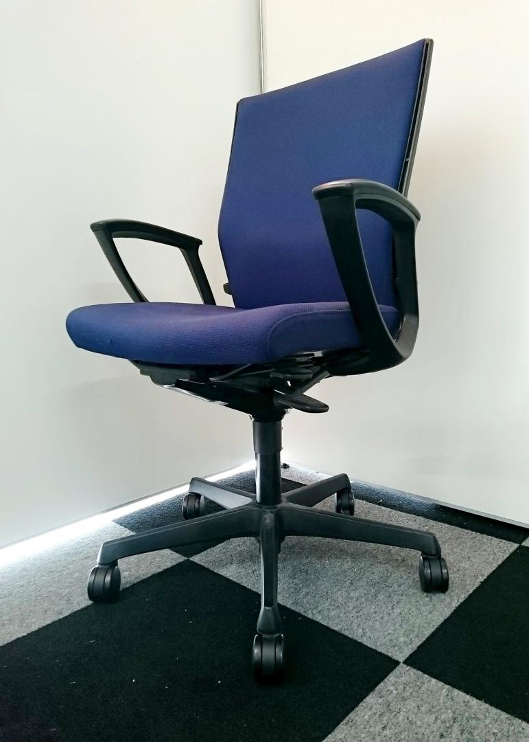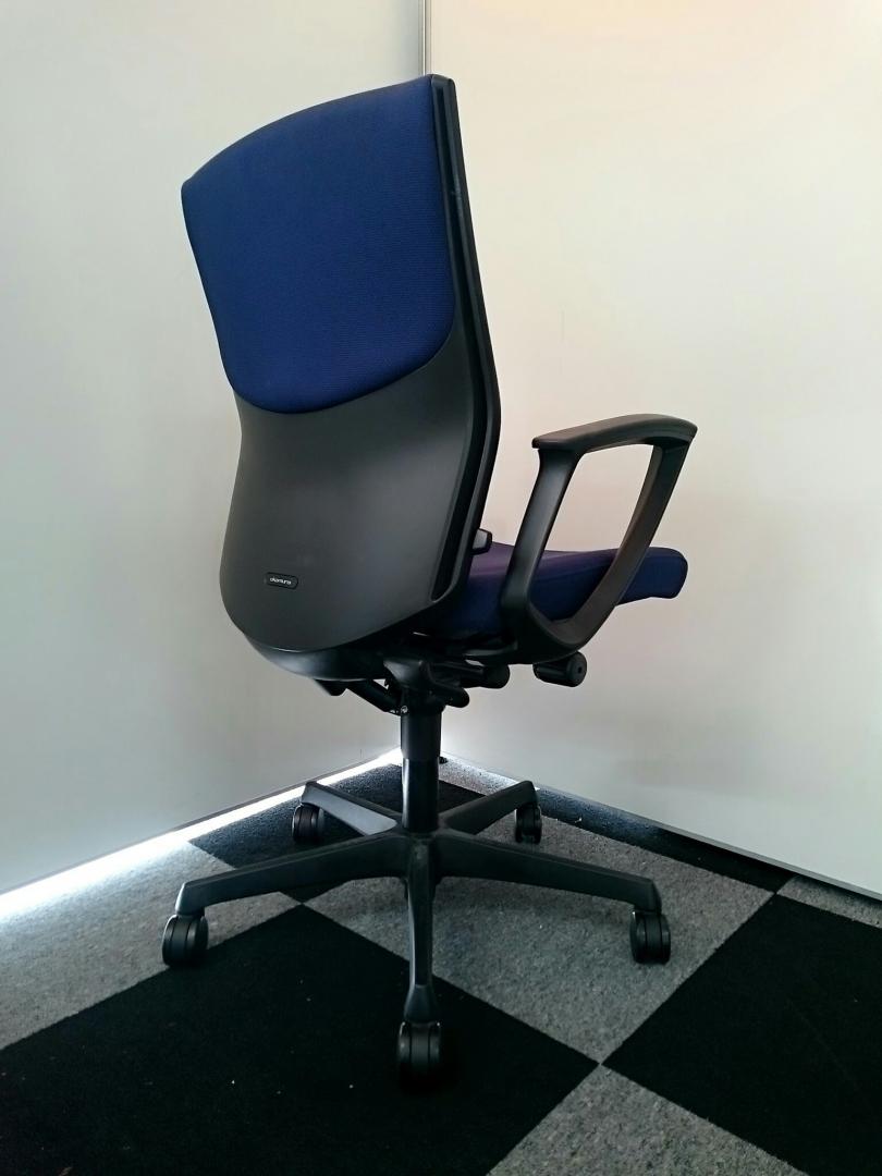 【関西倉庫在庫】■オカムラ(okamura)製 エスクードチェア 肘付ローバックチェア ■ダークブルー×グレーシェル ■デザインアーム ■ランバーサポート 【弊社使用欄:A01029268】