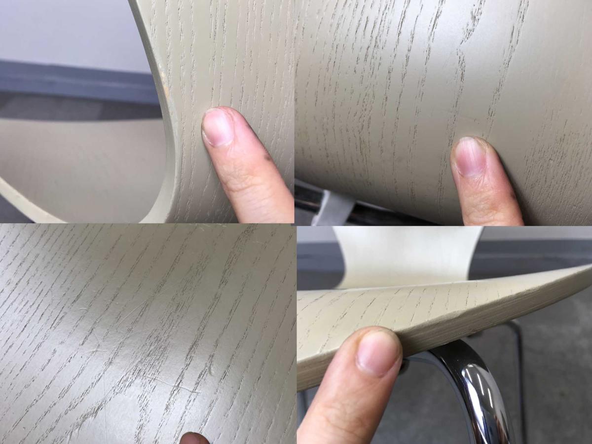 - 目立つ箇所あり傷・破れ・ほつれ・へたり・しわが多数または深い傷・破れ・ほつれ・へたり・しわが一部ある。※座面・背もたれ、シェル、脚部等にある。