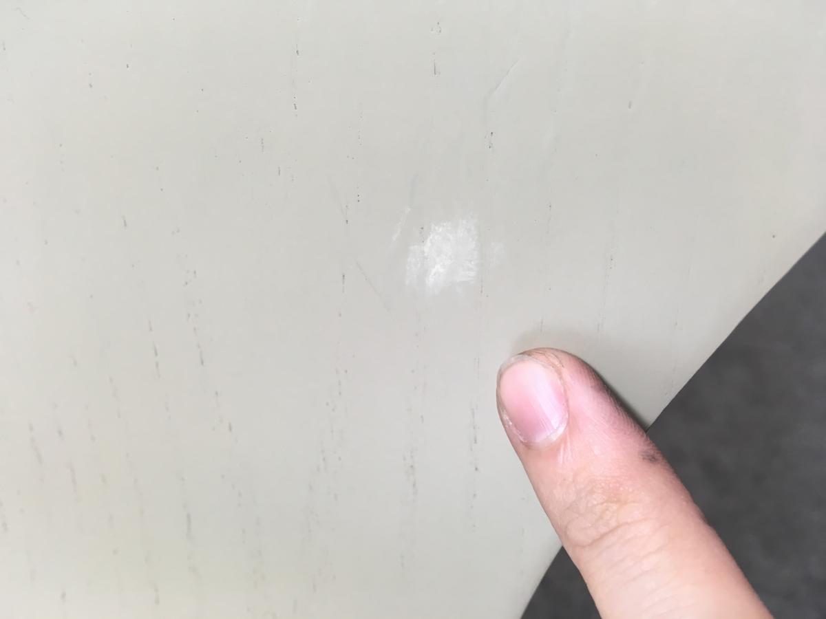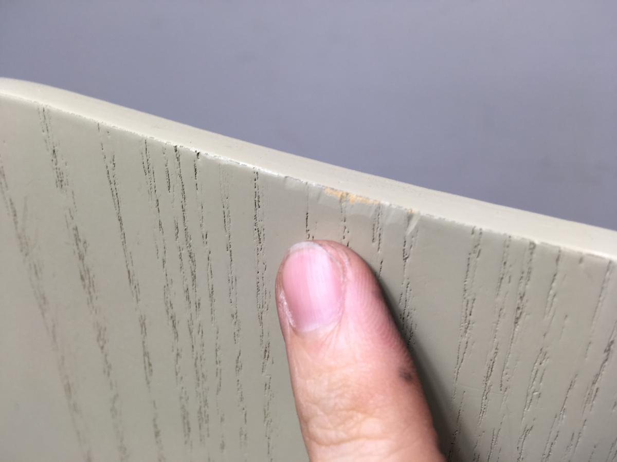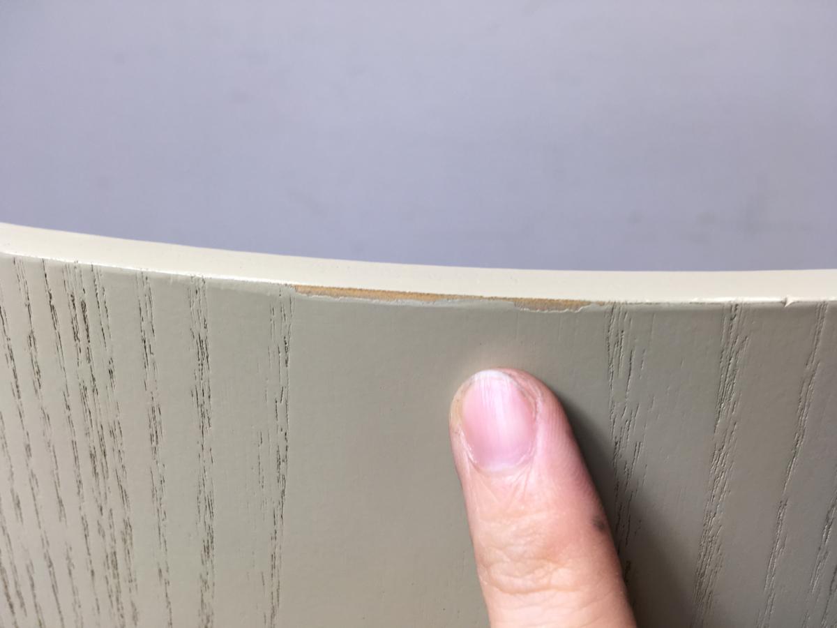 座面のエッジ部分に剥がれがリます。(写真参照)
