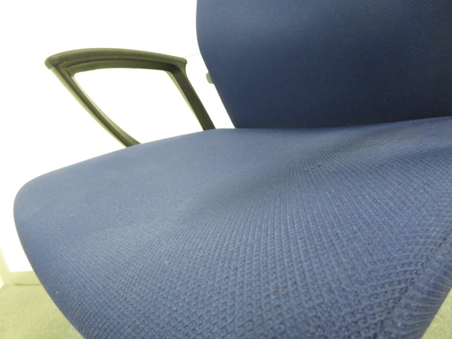 【濃いめのブルーカラーの人気チェア!】オカムラ エスクード 肘付 ハイバック ネイビーブルー グレーシェル 人気 中古 福岡 九州最大級《オフィスバスターズ福岡博多店は、福岡を拠点として、日本全国へ中古オフィス用品・オフィス家具を提供しております》