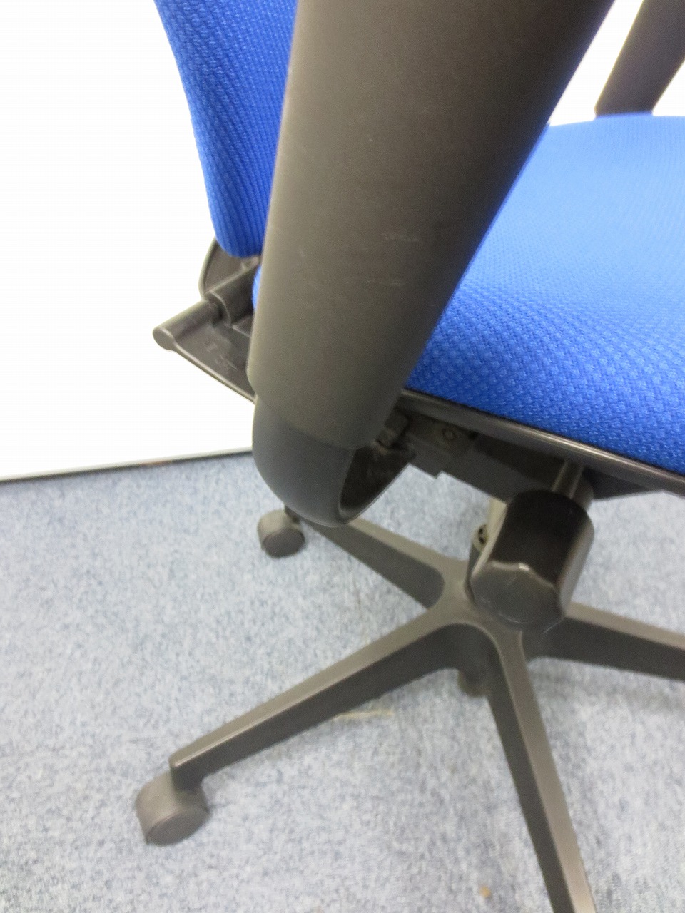 【一人ひとりにマッチする座り心地!姿勢の変化にフレキシブルに対応!】■イトーキ(ITOKI)製 プラオチェア 肘付 ローバック ■サークル肘 ■背面ストロングブルー×座面ブラック オフィスバスターズ 東大阪店【K11】
