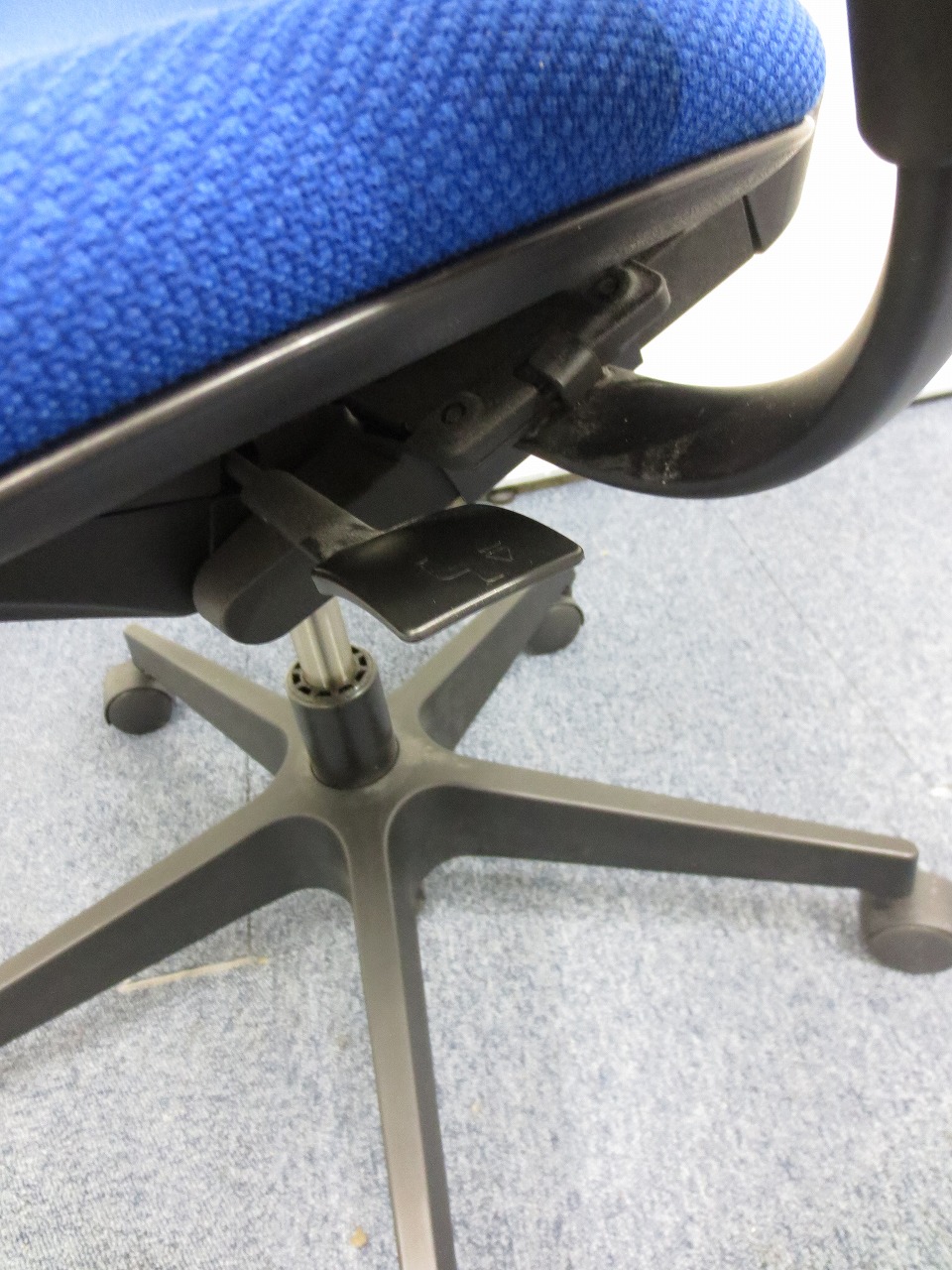 【在庫セール品・7脚限定】【T12】■イトーキ(ITOKI)製 プラオ(PRAO)チェア 肘付ローバック ■ストロングブルー ×ブラックシェル ■サークル肘 ■ランバーサポート付き ■防炎生地【一人ひとりにマッチする座り心地!ミドルクラスの定番チェア!】
