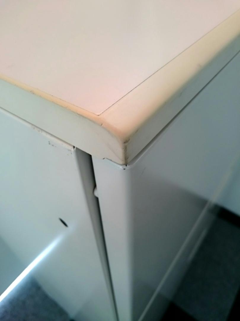 - かなり強い濃い黄ばみ・変色が商品全体にある。(例、天板、正面、背部、サイド部分にある。)