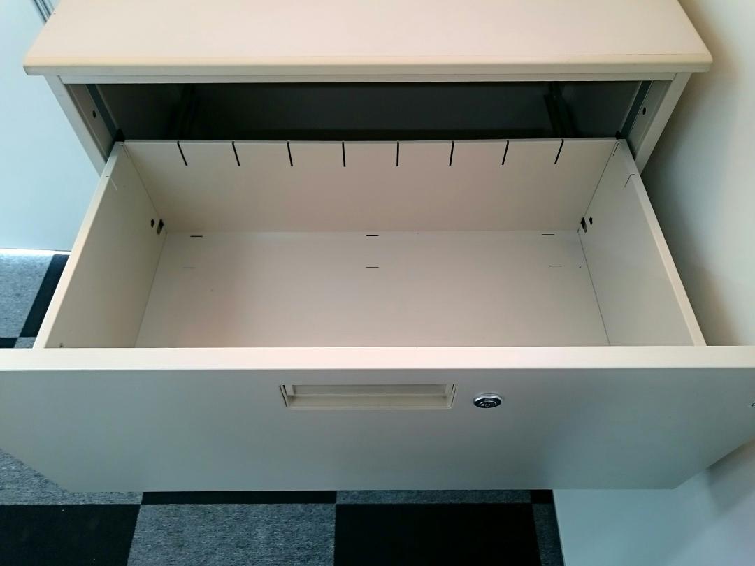 - 一部不具合ありそ引出の開閉不可、施錠不可、棚板無しといったの書庫の本来の効用を果たすための機能以外の一部が使用不可(例、扉、引出の開閉がしづらいなどがある。 )