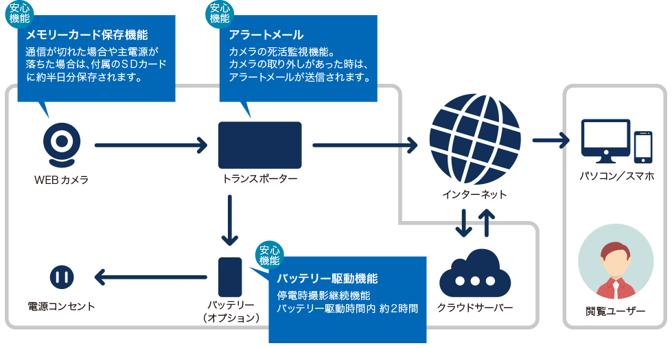 電源とLANを繋げば設置完了。 簡単に撮影を開始できます。
