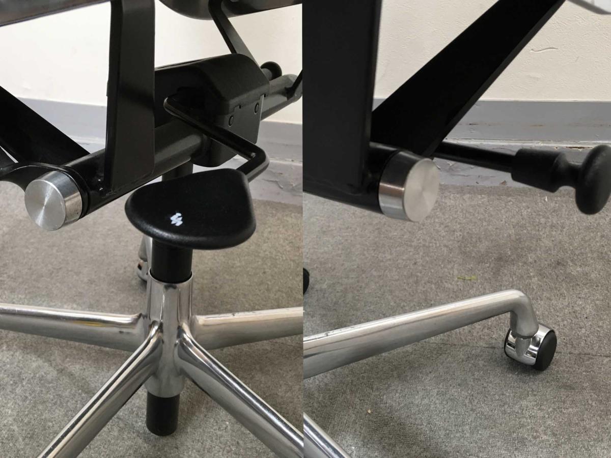 機能面でも現代のチェアに引けを取らず、高さ調整・チルト機構、そしてチルトロック機能が付いています。高度なサポート性と柔軟性を兼ね備えた座面を搭載しています。