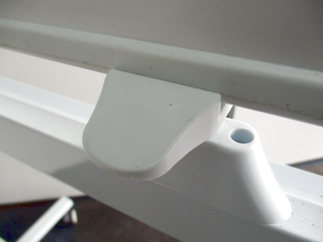 - かなり強い濃い黄ばみ・変色が商品全体にある。(例、板面、受け、サイド部分、脚部にある。)