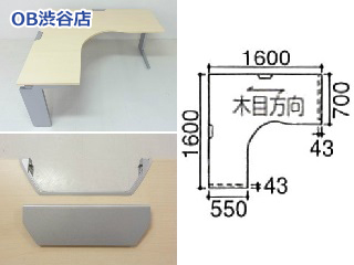 【定価約30万円程度】オカムラ プロユニットシリーズ L字型デスク 天板ネオウッドライト×脚ホワイト W1600×D1600の広々サイズ 限定1台入荷