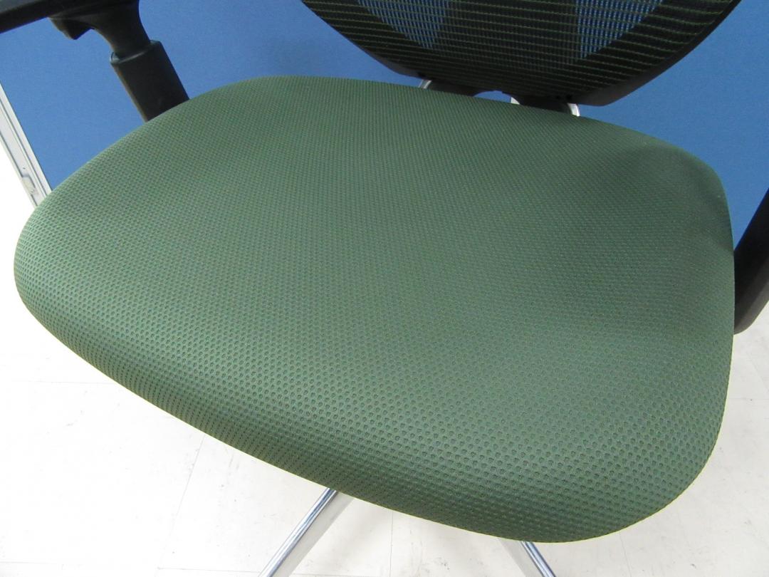 【美しい曲線&透明感のあるメッシュ】■オカムラ製 サブリナチェア ダークグリーン アジャストアーム付 ホワイトボディ ハンガー付【※外部倉庫在庫品(店頭在庫無)】【BR】
