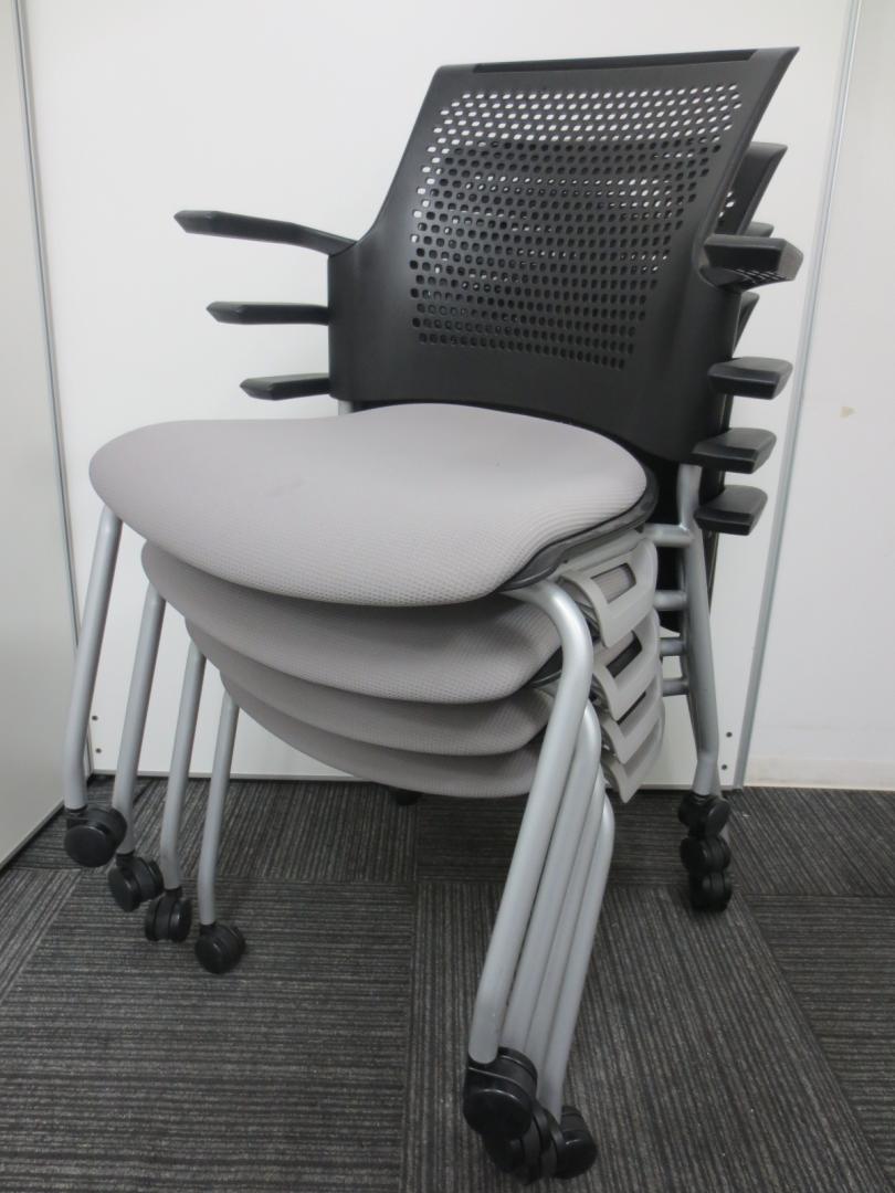 【8脚セット商品!!】【状態良好!!】【なんと24脚も入荷!】■プラス(plus)製スタッキングチェア■グレー■熱がこもらない背もたれメッシュ構造!!■キャスター付き- 春日部・越谷店