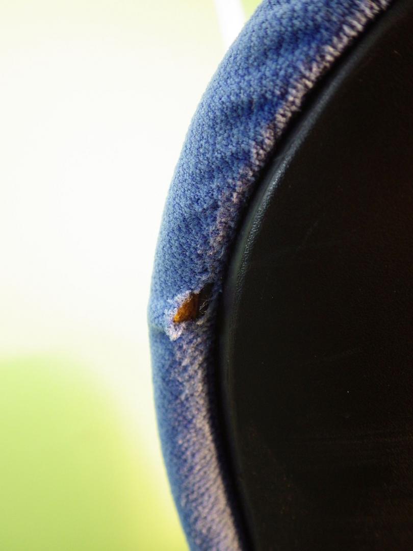 - あり黄ばみ・変色が広い範囲にうっすらある、または濃い黄ばみ・変色が一部ある。(例、座面・背もたれ、脚部等にある。)