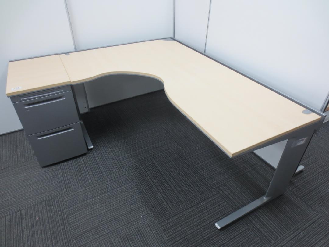 【L型デスク+3段脇机】【岡村製作所(okamura)】■シルバー&ナチュラル■W1800サイズ■時代の最先端をあなたのオフィスにも設置してみませんか??- 春日部・越谷店