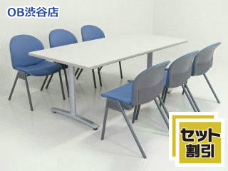 【地方倉庫在庫品】コクヨ製ミーティングテーブル+スタッキングチェア6脚セット【W1800】【RA】【113】- 在庫数