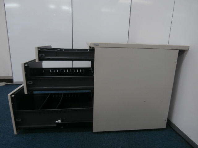 【関西倉庫在庫品】【引き出し・ワゴン付きで資料が多い事務作業担当者にオススメ!】■コクヨ製 BSシリーズ 片袖机 ■引き出し付き ■ワゴン3段 ■グレー【弊社使用欄:A01042822】