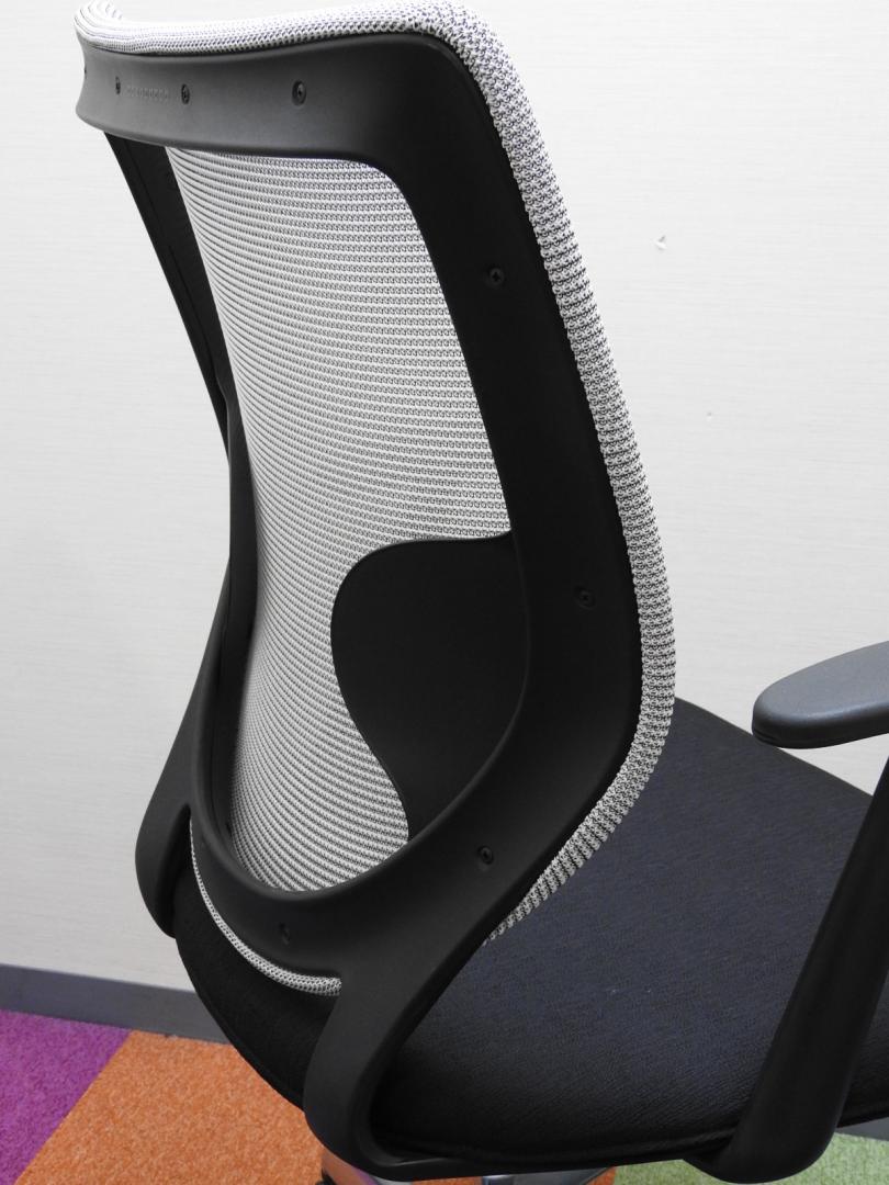 柔軟性のあるフレームと通気性のよいメッシュとを組み合わせた背もたれが、