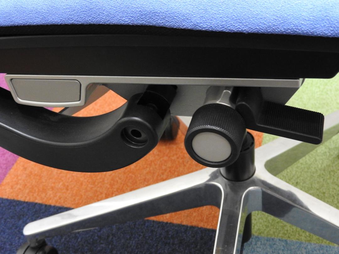快適な座り心地に不可欠な調節機能である、上下昇降、座面の奥行き調整、リクライニングなどを備えており、操作もわかりやすく好評です。 特に、座面の奥行きは、座面下の左右に通った細いバーで調整でき、座ったままで軽やかに滑るように調整が可能です。 価格面では、新品では高めですが、中古は流通も多く、定価の3割前後の価格で高級チェアの座り心地を手に入れることができます!