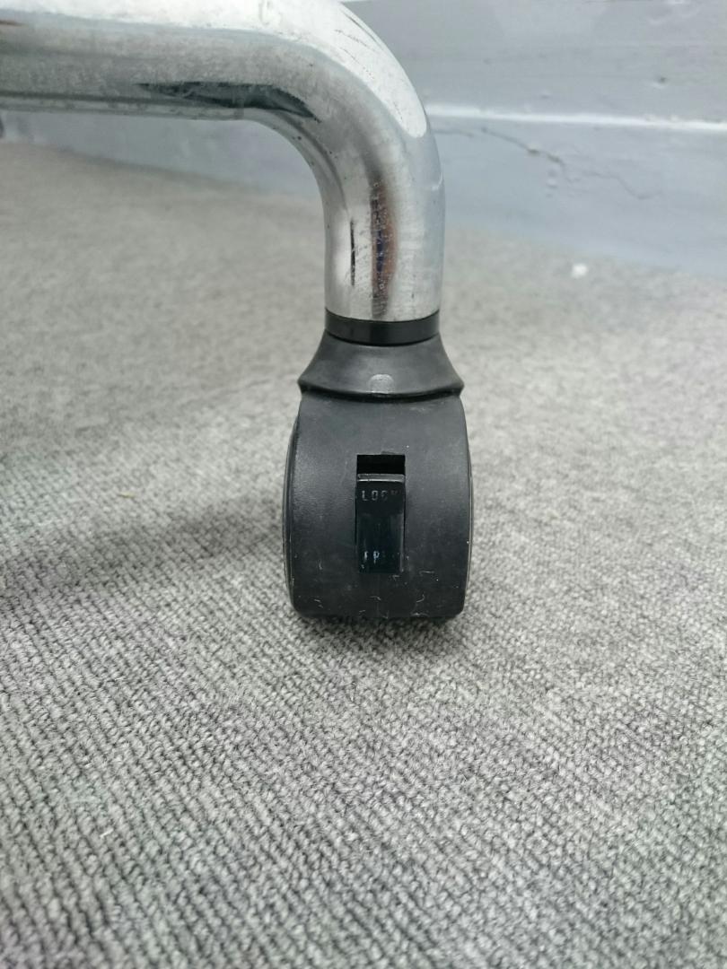 - 一部不具合あり天板歪み、アジャスター無し、キャスター使用不可ようなそのテーブルの本来の効用を果たすための機能以外の一部が使用不可な状態。(例、キャスターロッ ク機能使用不可、棚板無し等がある。)