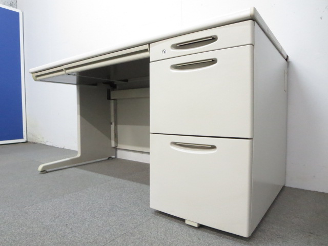 【幅広デスクで作業効率アップ!】■オカムラ 片袖机 W1400mmサイズ ■SD-eデスクシリーズ ライトスモーク【岡村製作所】- 川崎店