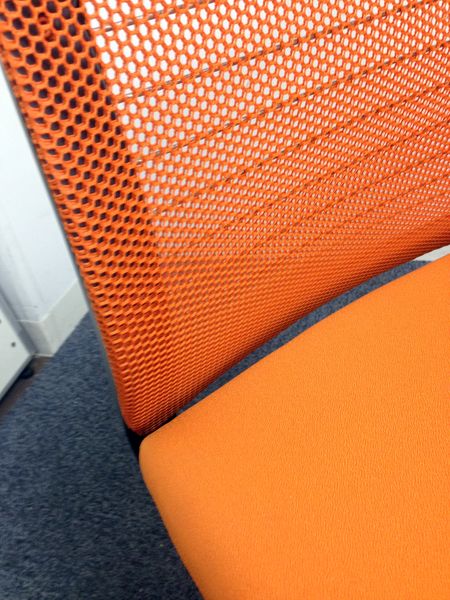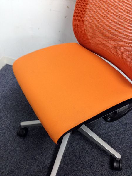 【在庫入替セール】スチールケース(Steelcase)シンクチェア 肘無しチェア オレンジカラーでオフィスも明るい印象に 背メッシュ 事務用にも会議室用にもおすすめ【愛知・名古屋・豊田・静岡・浜松】
