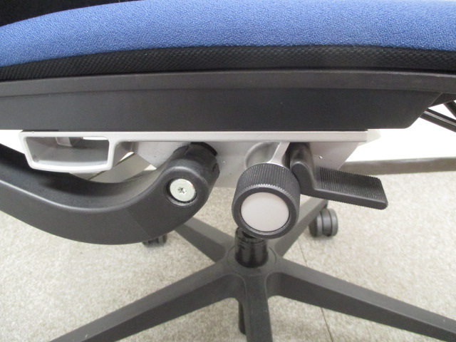 快適な座り心地に不可欠な調節機能である、上下昇降、座面の奥行き調整、リクライニングなどを備えており、操作もわかりやすく好評です。 特に、座面の奥行きは、座面下の左右に通った細いバーで調整でき、座ったままで軽やかに滑るように調整が可能です。 価格面では、新品では高めですが、中古は流通も多く、定価の3割前後の価格で高級チェアの座り心地を手に入れることができます!