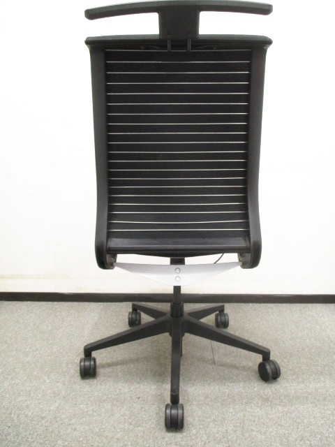 背中のスポークがメッシュチェア、クッションチェアの中間ような支え具合、