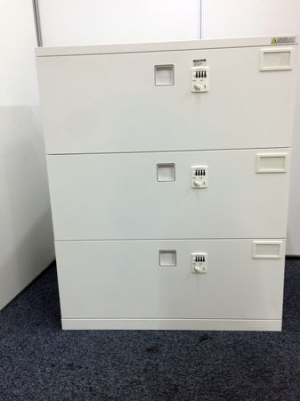 ☆人気のセパレートロックタイプ!【個人用ロッカーとしてもオススメ!】■オカムラ レクトラインシリーズ 3段ラテラル書庫 ホワイト天板付 各段施錠タイプ ■Okamura Rectline】