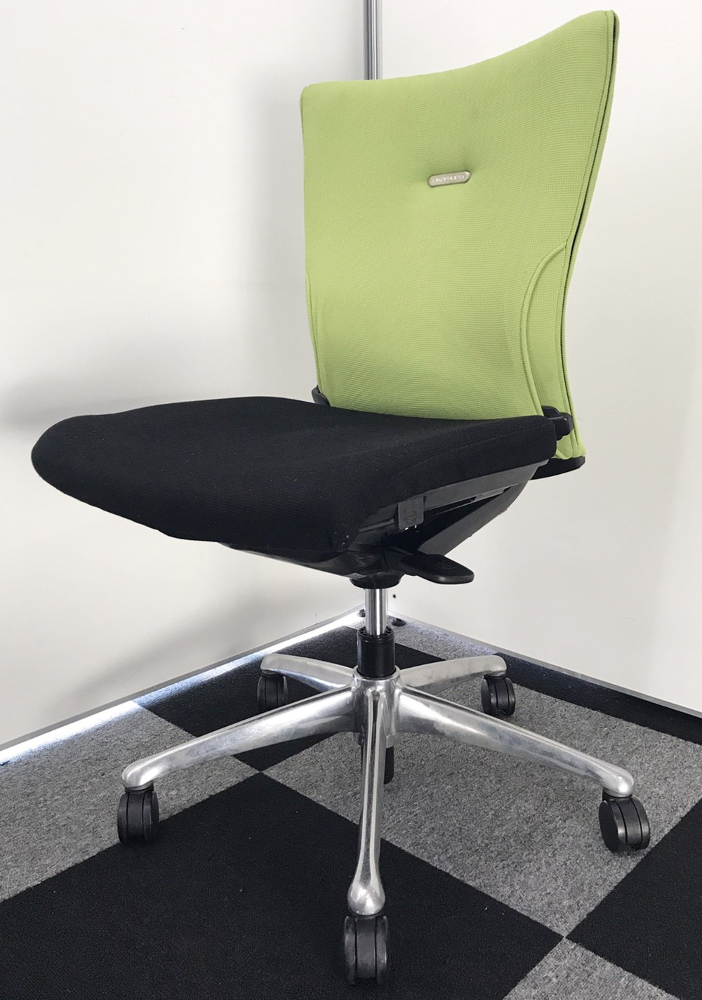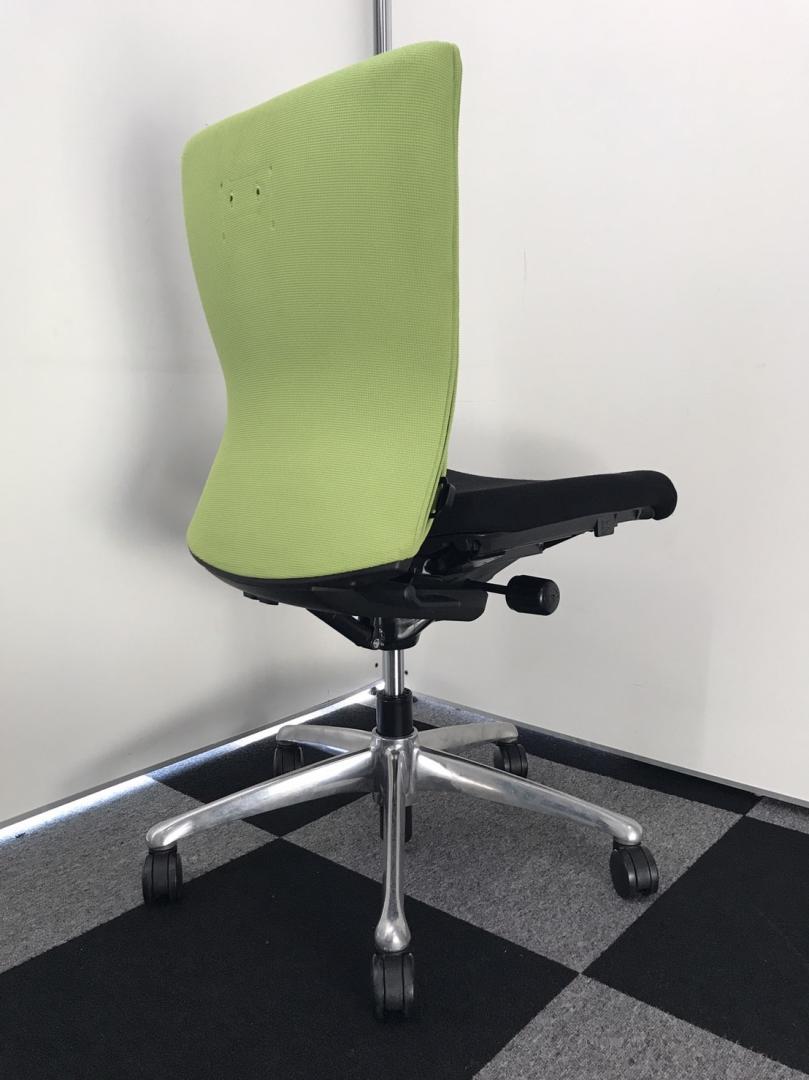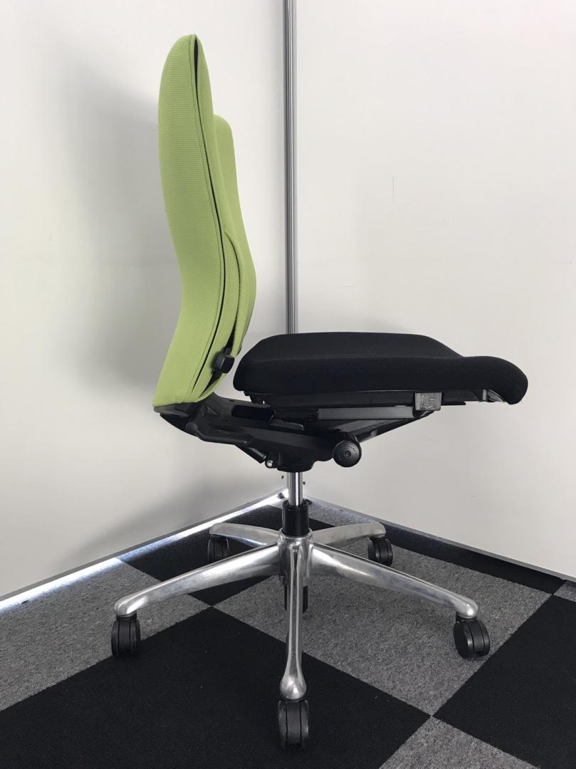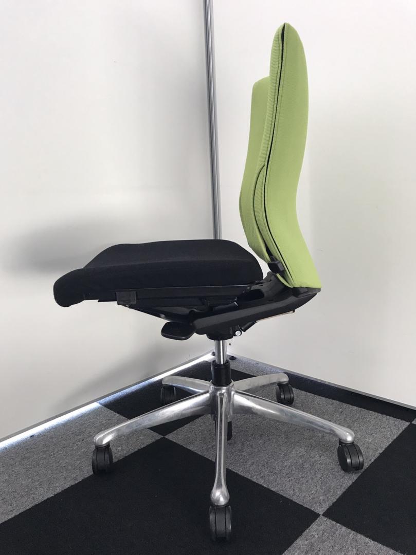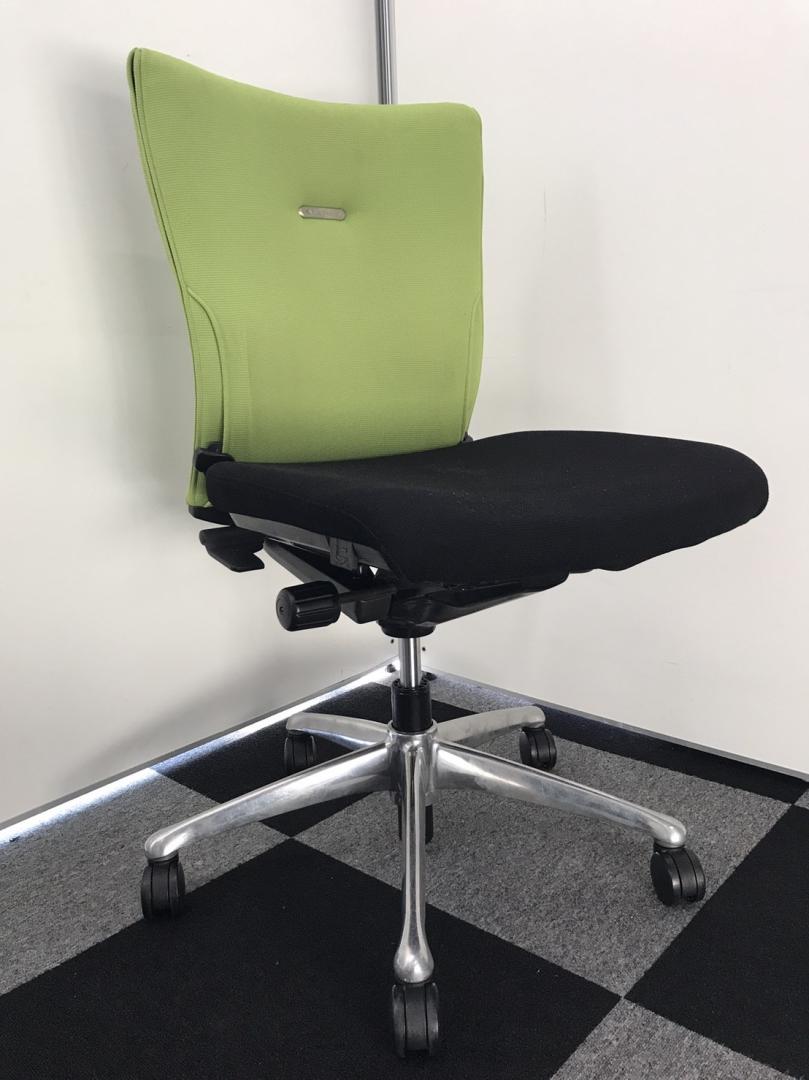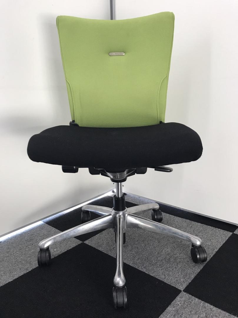 オカムラ製 フィーゴ シームレスタイプ ブラック×ライトグリーン【機能とデザインを兼ね備えたチェア】肘外し