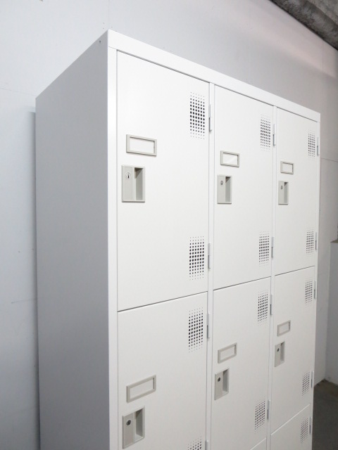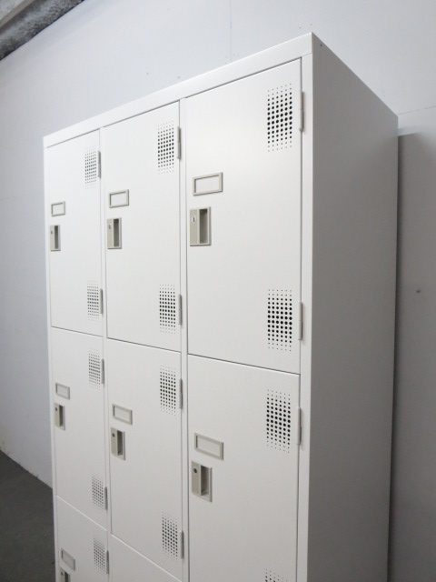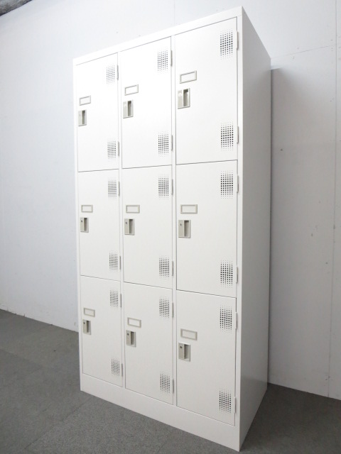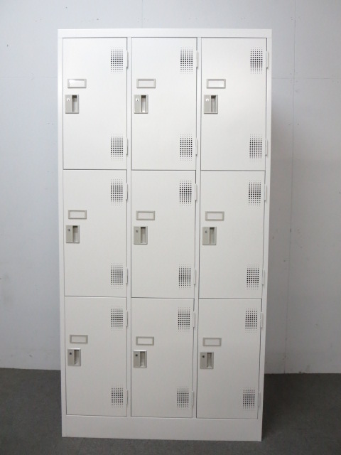 【状態良好です!】■9人用ロッカー(3列3段) ■ホワイトグレー ■シリンダー錠タイプ- 川崎店