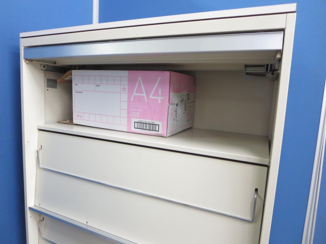 - 一部不具合ありそ引出の開閉不可、施錠不可、棚板無しといったの書庫の本来の効用を果たすための機能以外の一部が使用不可(例、扉、引出の開閉がしづらいなどがある。 )