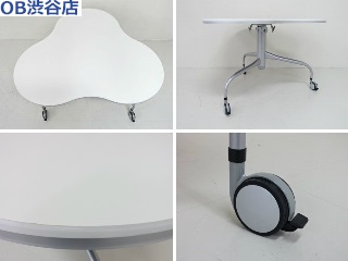 - 一部不具合あり天板歪み、アジャスター無し、キャスター使用不可ようなそのテーブルの本来の効用を果たすための機能以外の一部が使用不可な状態。(例、キャスターロッ ク機能使用不可、棚板無し等がある。)