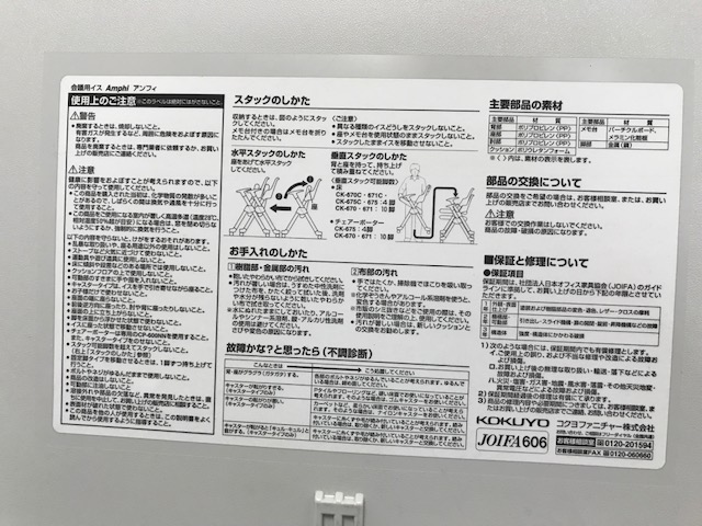 コクヨ製、シンプルデザインのアンフィが入荷致しました。