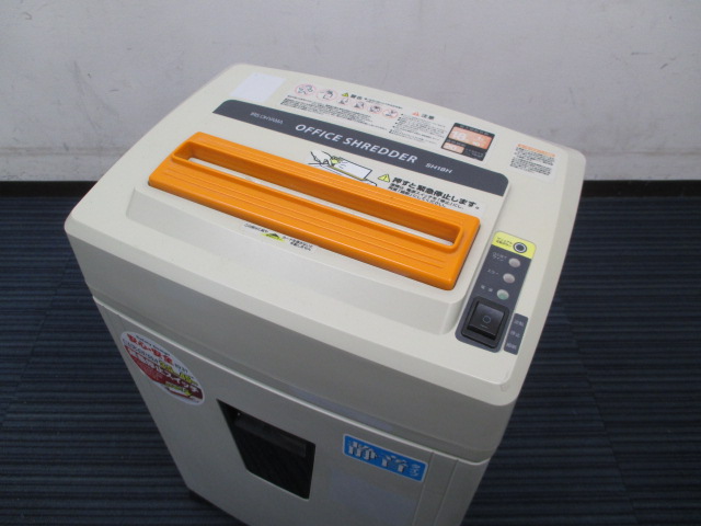【ホッチキスも裁断できるコンパクトシュレッダー!】アイリスオーヤマ製シュレッダー■日焼け多めのためお安く!【中央区】【日本橋】【中古オフィス家具】オフィスシュレッダー(A4対応)。
